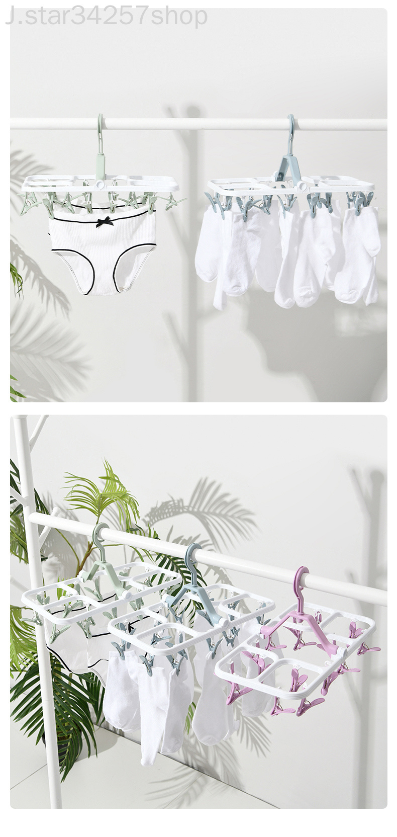 Percha de secado de calcetines de dormitorio de gancho multifuncional doméstico percha de secado a prueba de viento de múltiples clips percha plegable de plástico