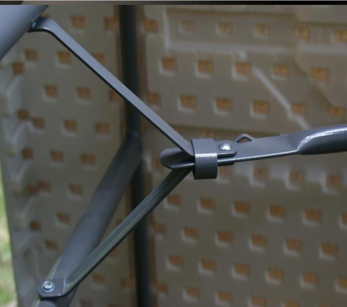材质说明:台面PE中空塑料出模一次成型+铁脚喷涂(脚架可折叠)