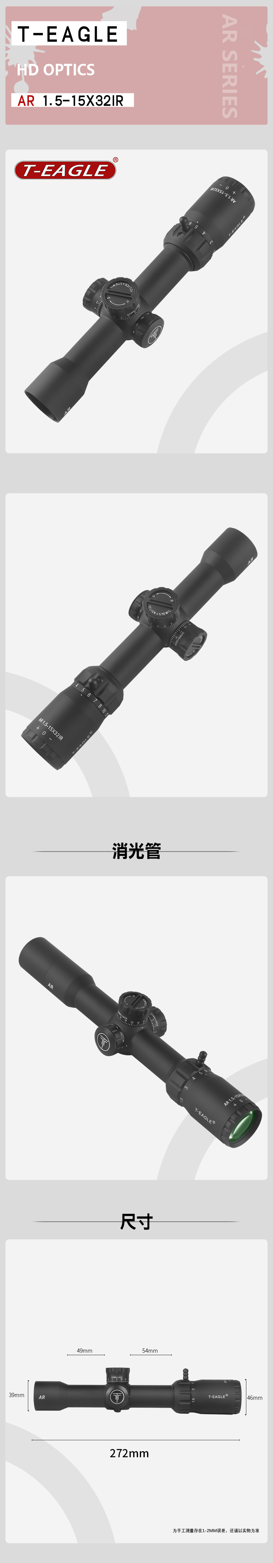 La placa de vidrio T - Eagle Snake ar1.5 - 15x32 se divide en la vista corta de alta gama y la vista trasera sin foco con luz
