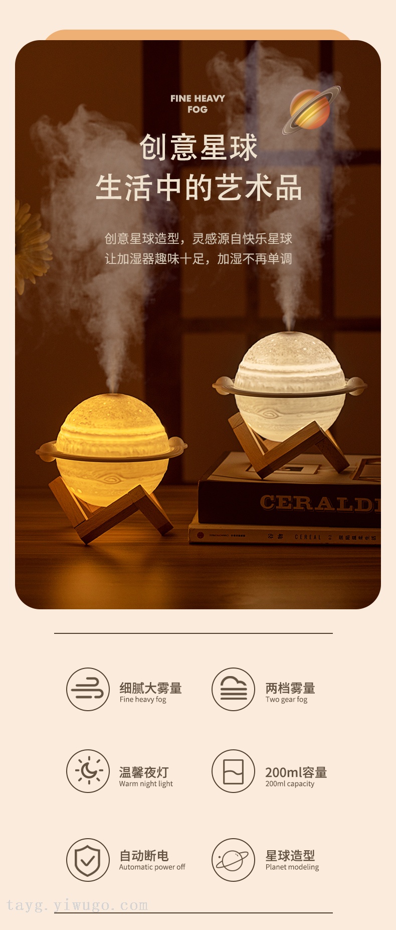 Nuevo Humidificador Júpiter 2022 pequeña luz nocturna Humidificador de lámparas de Ambiente