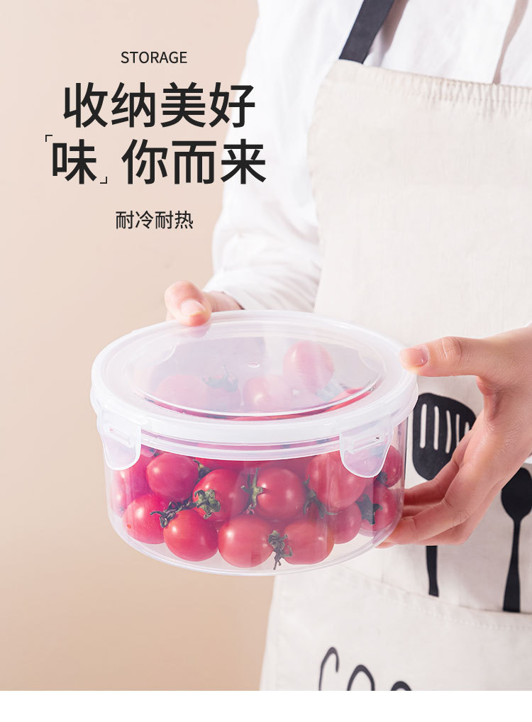 Caja fresca caja de almacenamiento sellada de gran capacidad de plástico transparente de grado alimenticio con tapa redonda rectangular para uso doméstico caja de frutas