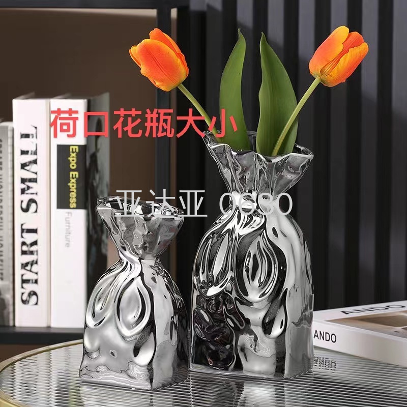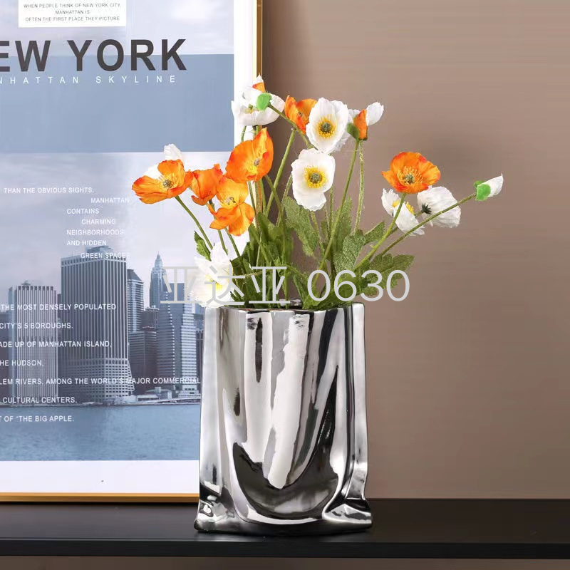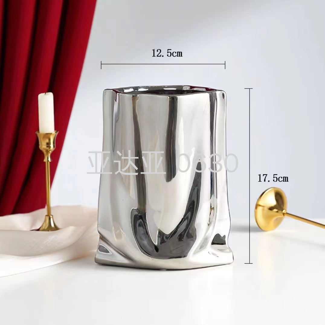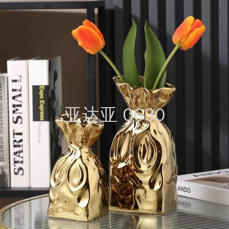 莫兰迪ins电镀金银陶瓷花瓶瓷器工艺品花瓶摆件样板间装饰花瓶