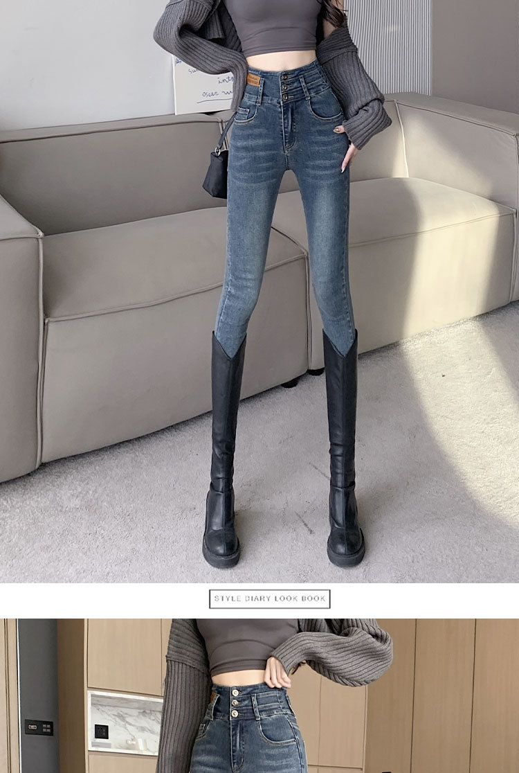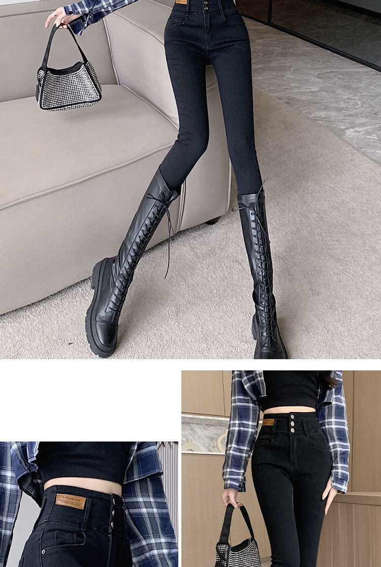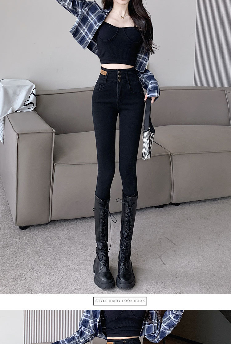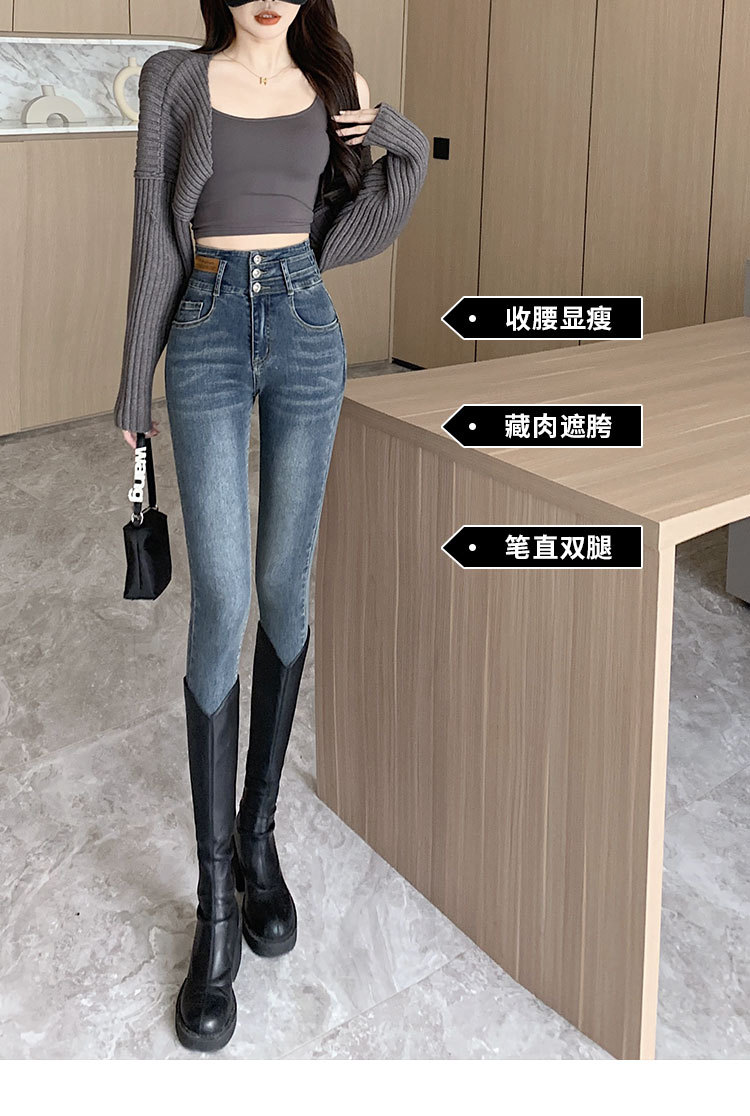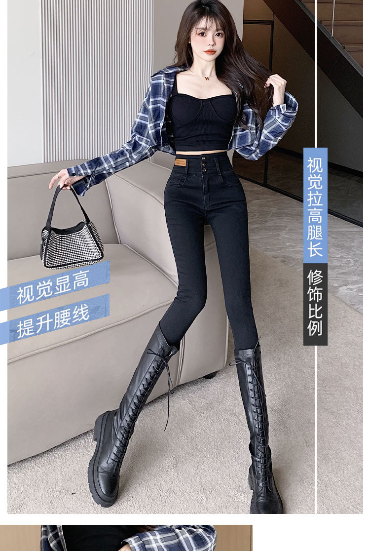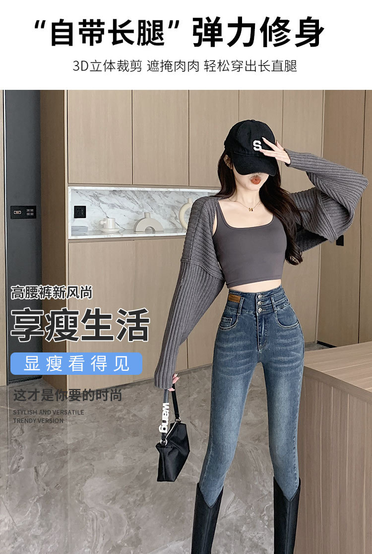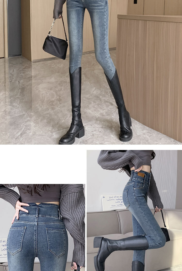 2023 jeans de cintura alta pantalones de lápiz de pies pequeños pantalones oscuros versión coreana otoño e invierno moda pantalones ajustados delgados moda