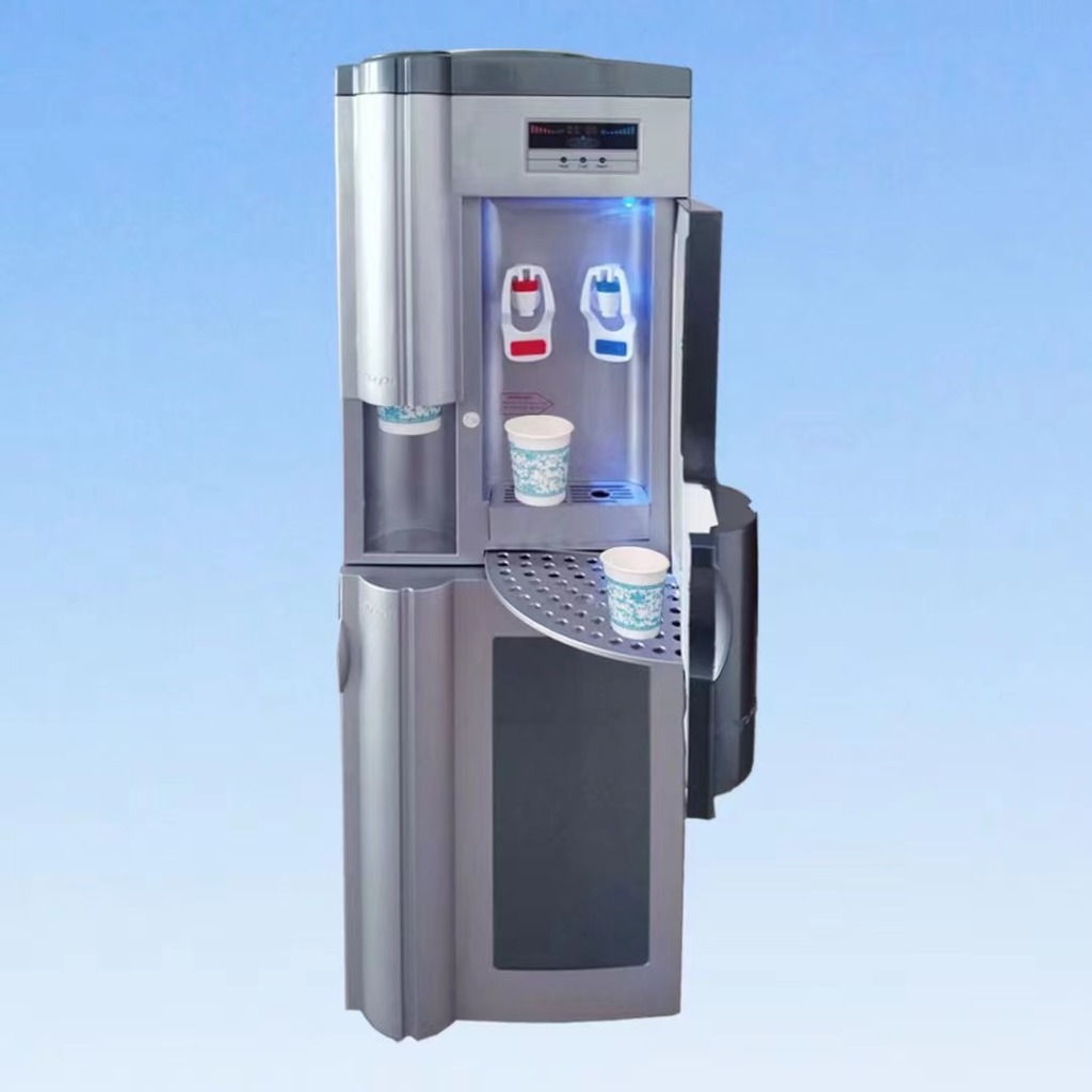 压缩机制冷饮水机选用304不锈钢健康内胆 百搭聪明座 双出水口 喷银门 大储物柜 抗压侧板 冰热两用 低音降噪 压缩机制冷 双温控防干烧 操作简单方便 外形美观 有ce 认证 出口很多国家和地区 广受好评 一件一台 独立彩盒包装 体积0.11 重量17.5KG 便于运输