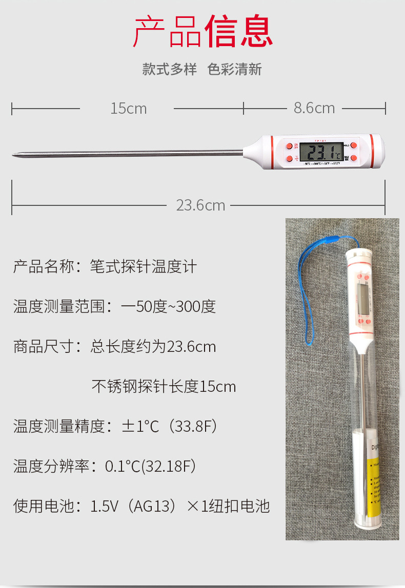 Tp101 termómetro de barbacoa termómetro de cocina termómetro de cocina temperatura del aceite temperatura del agua temperatura de la leche termómetro de temperatura de la pluma