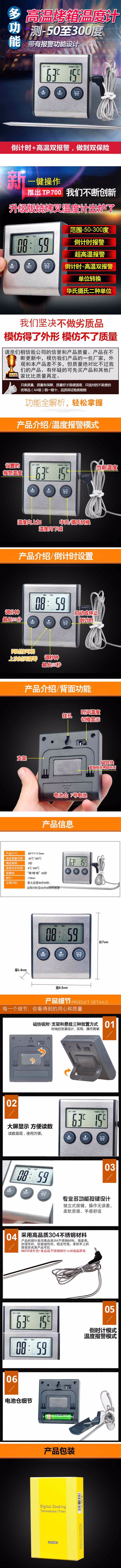 Tp700 horno de alimentos de cocina horneado a alta temperatura para medir la temperatura del aceite termómetro de barbacoa tipo sonda