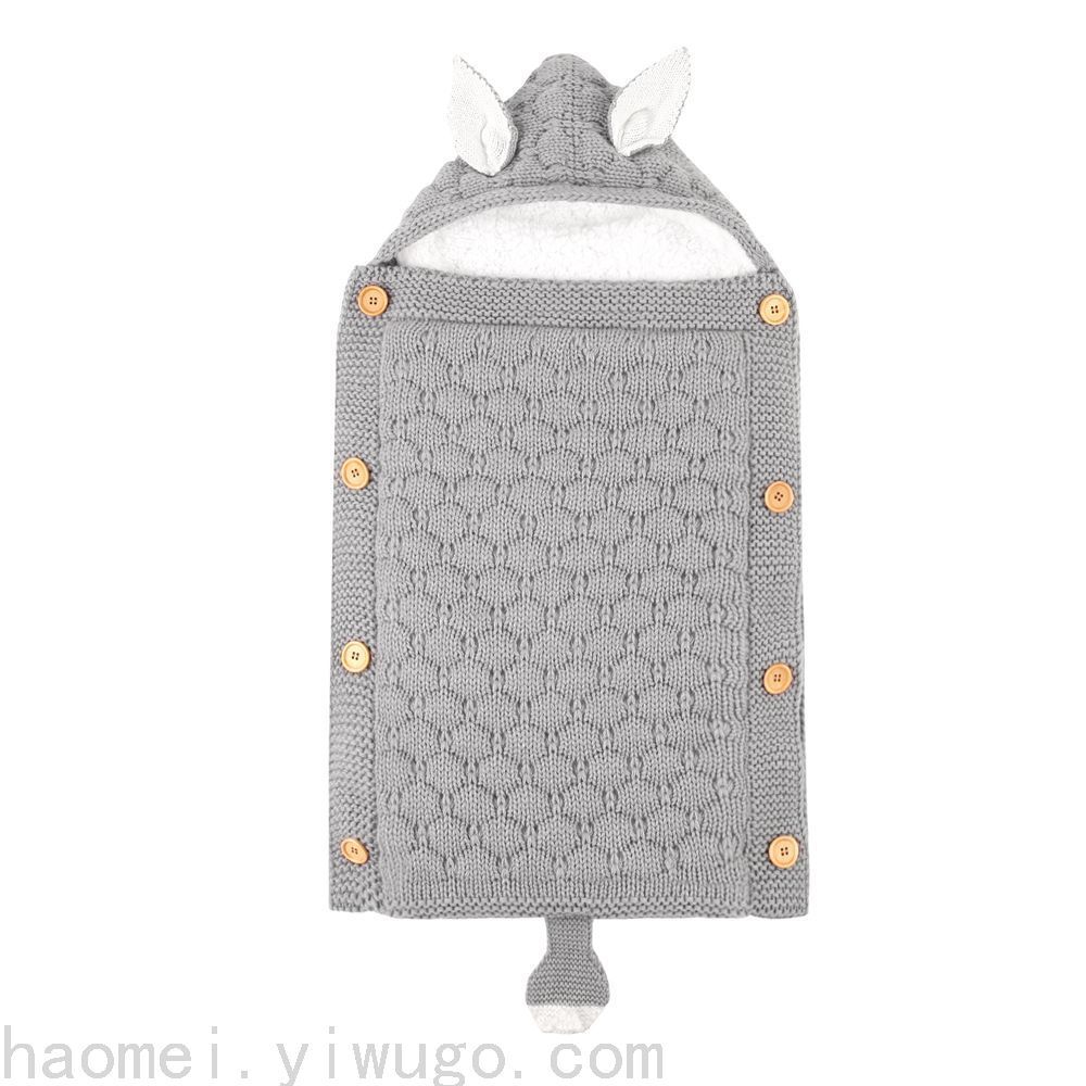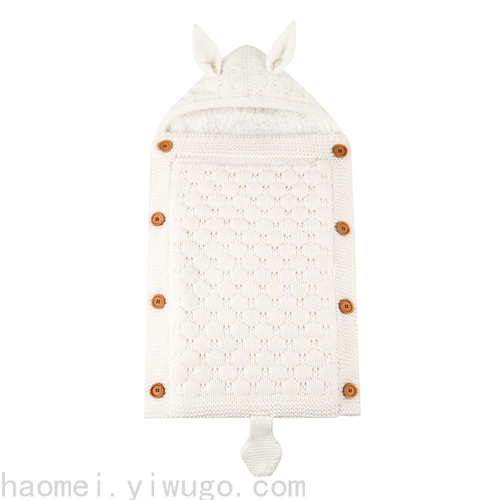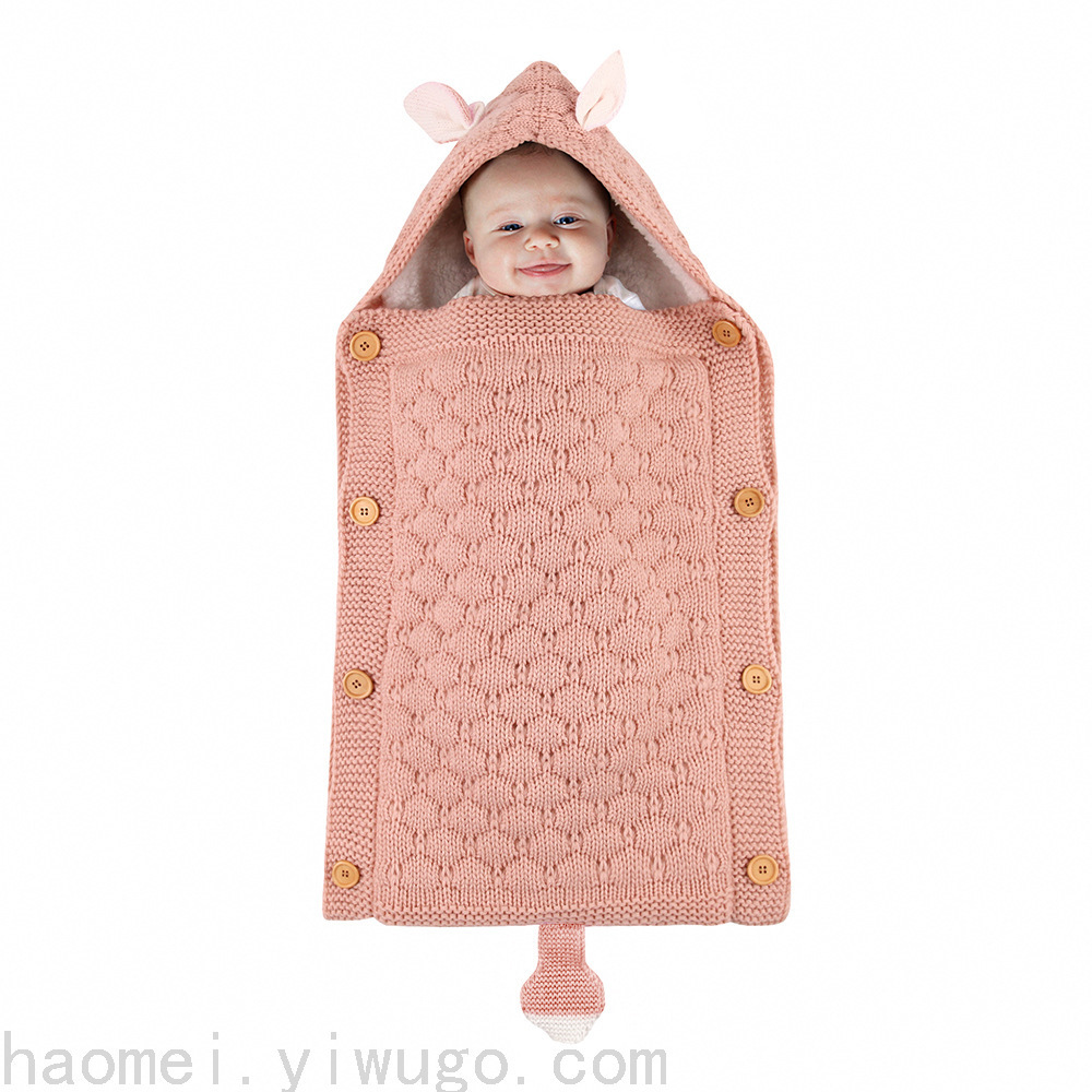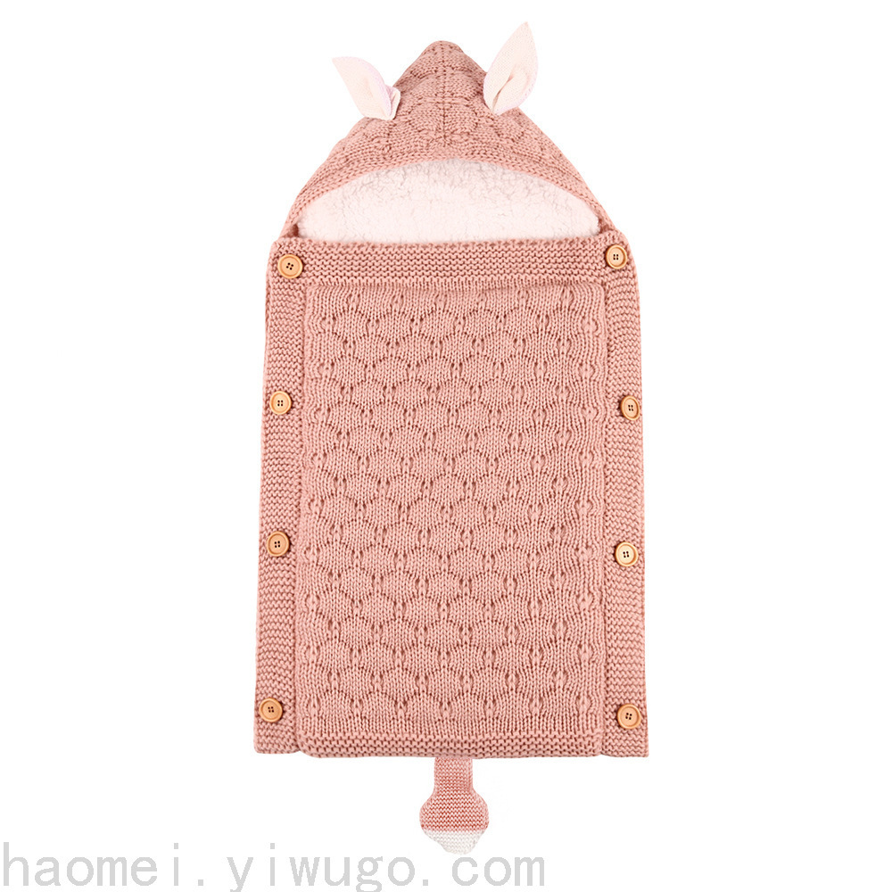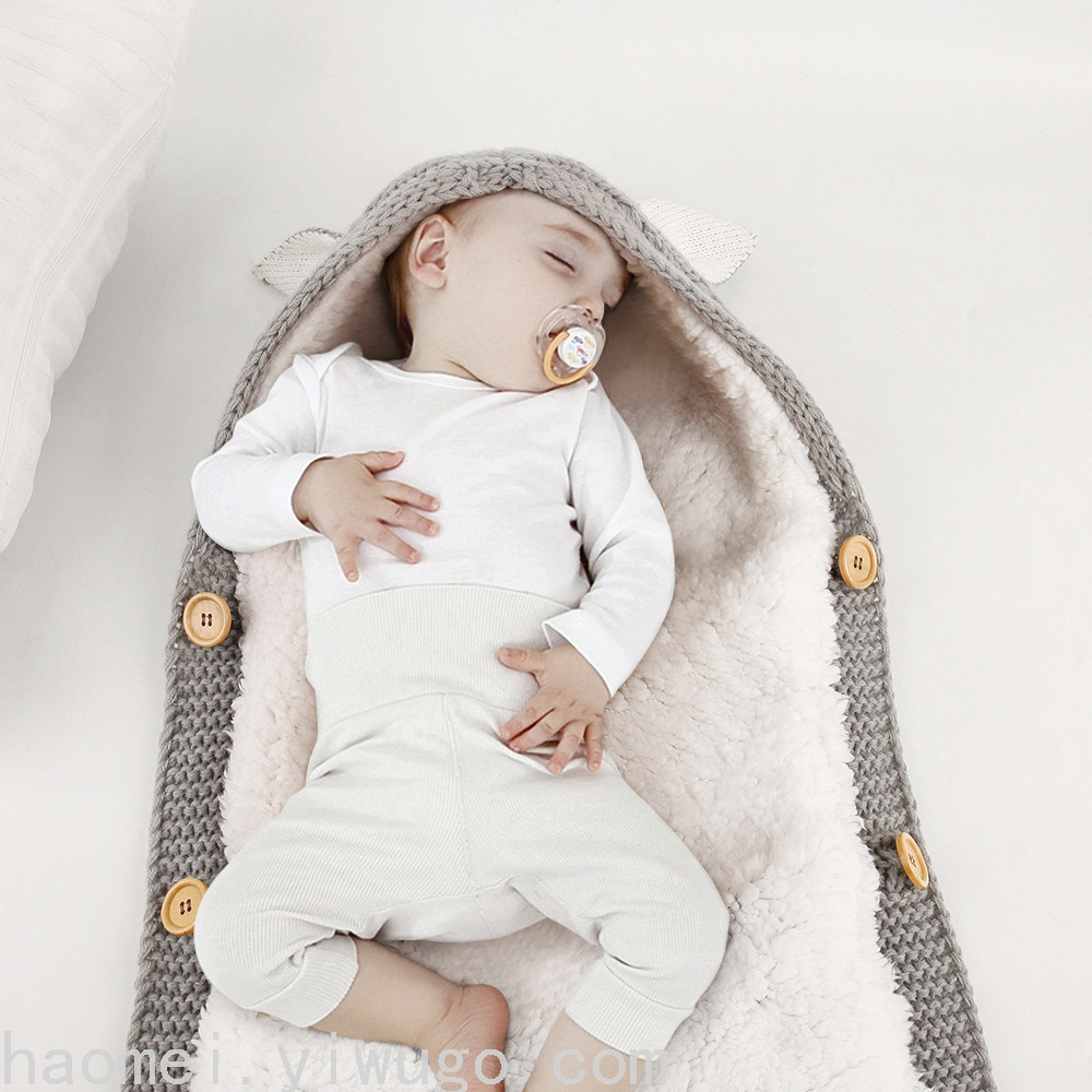 En otoño e invierno, el saco de dormir del carrito del bebé nuevo, botones de punto europeos y estadounidenses más terciopelo para mantenerse caliente, mini orejas y cola pequeña, saco de dormir