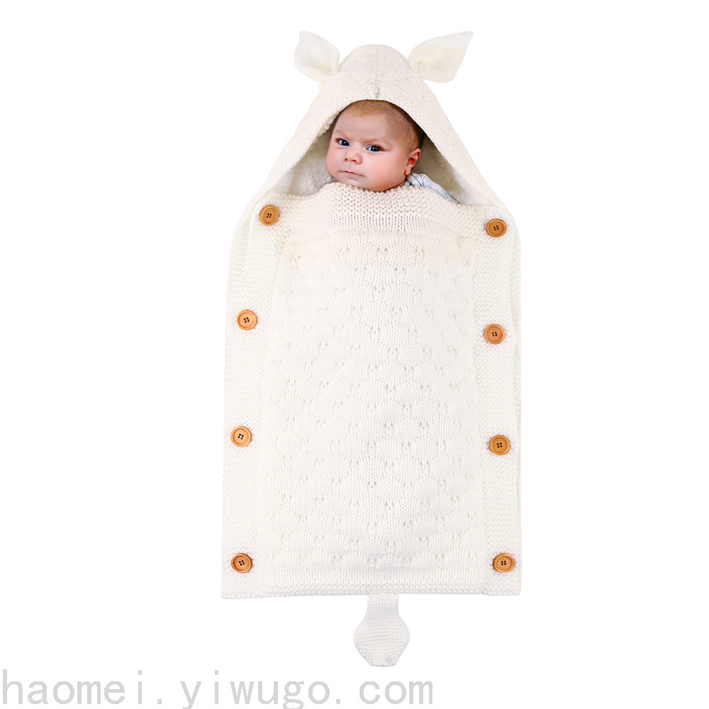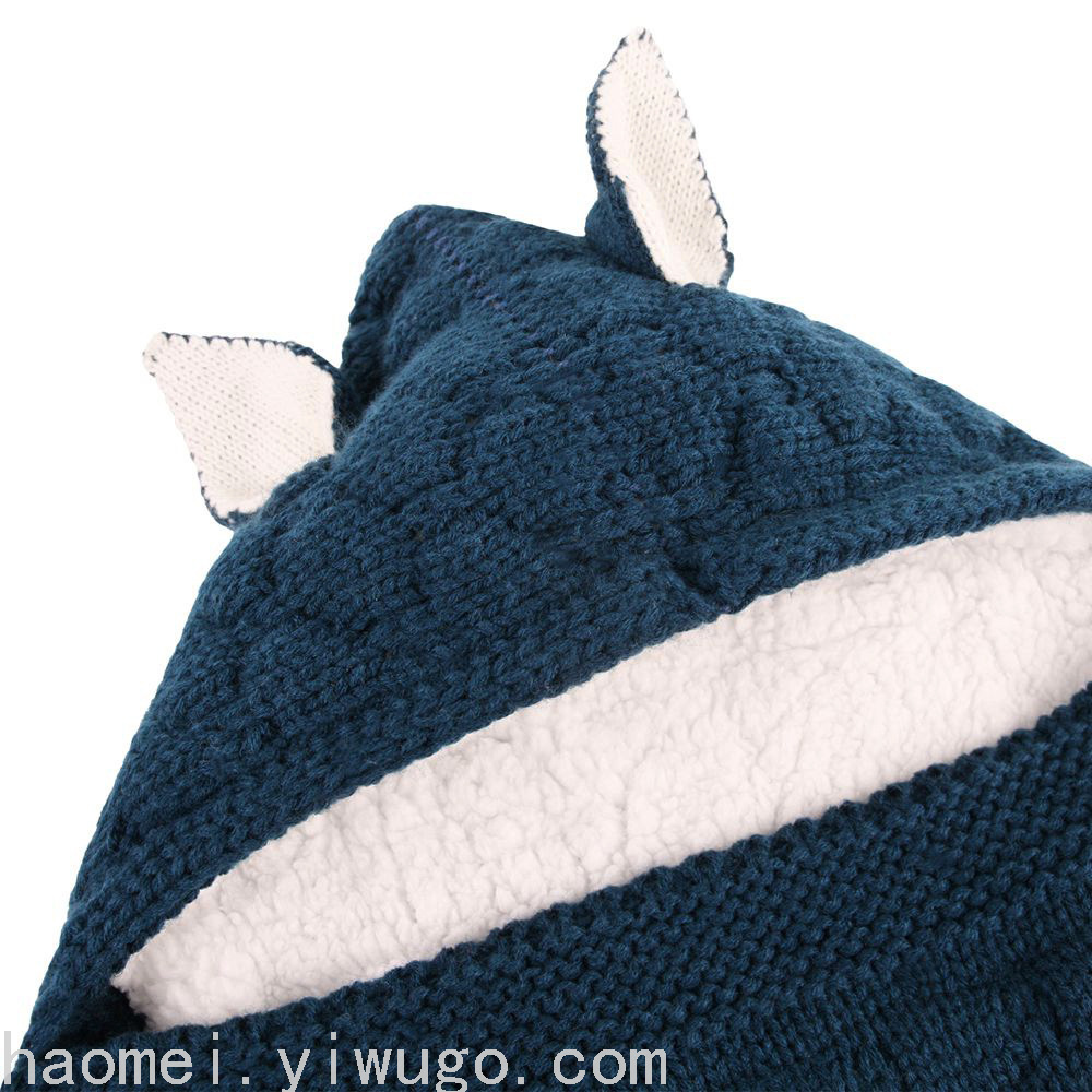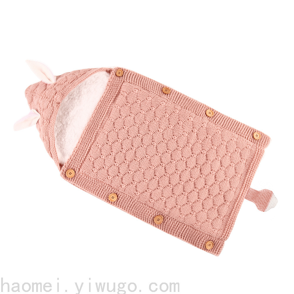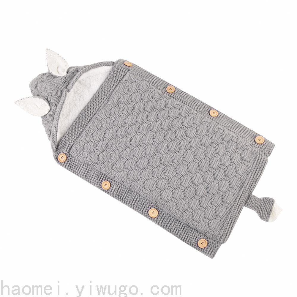 En otoño e invierno, el saco de dormir del carrito del bebé nuevo, botones de punto europeos y estadounidenses más terciopelo para mantenerse caliente, mini orejas y cola pequeña, saco de dormir
