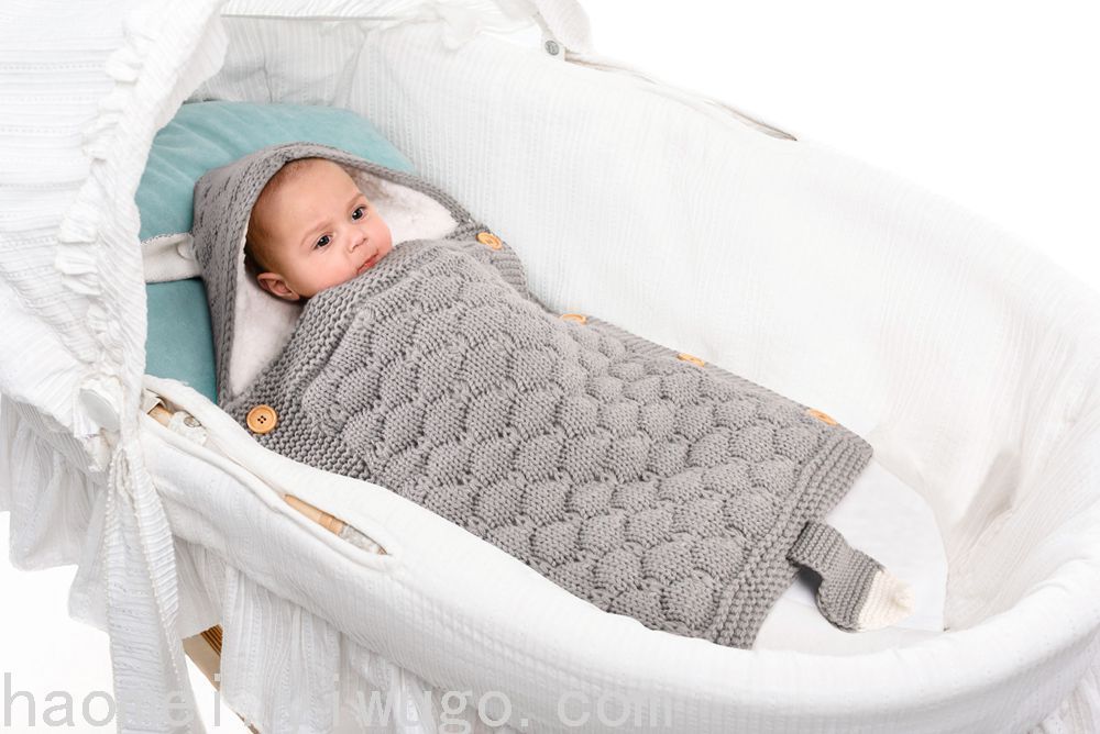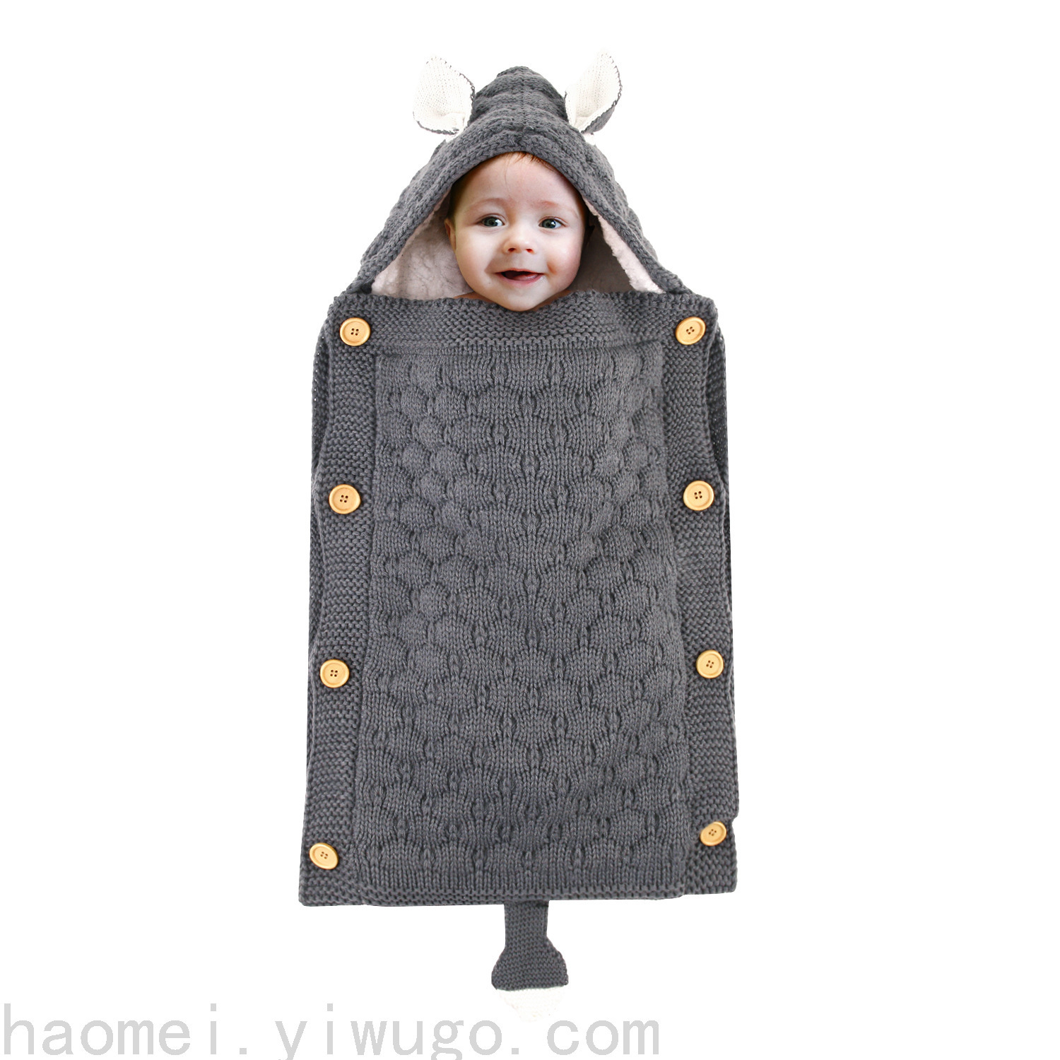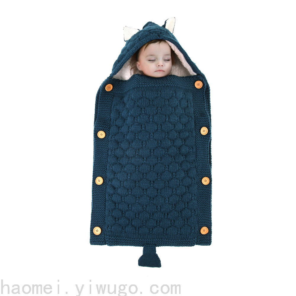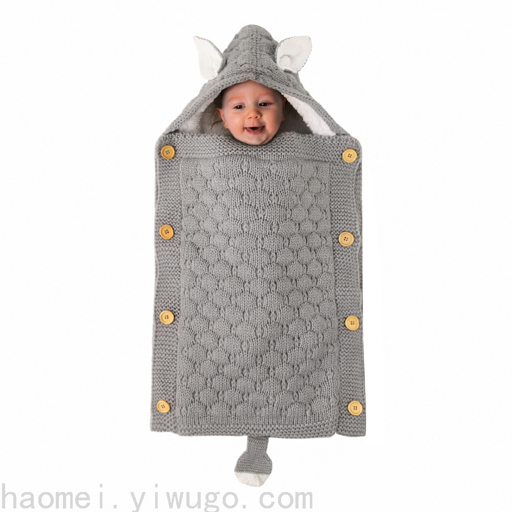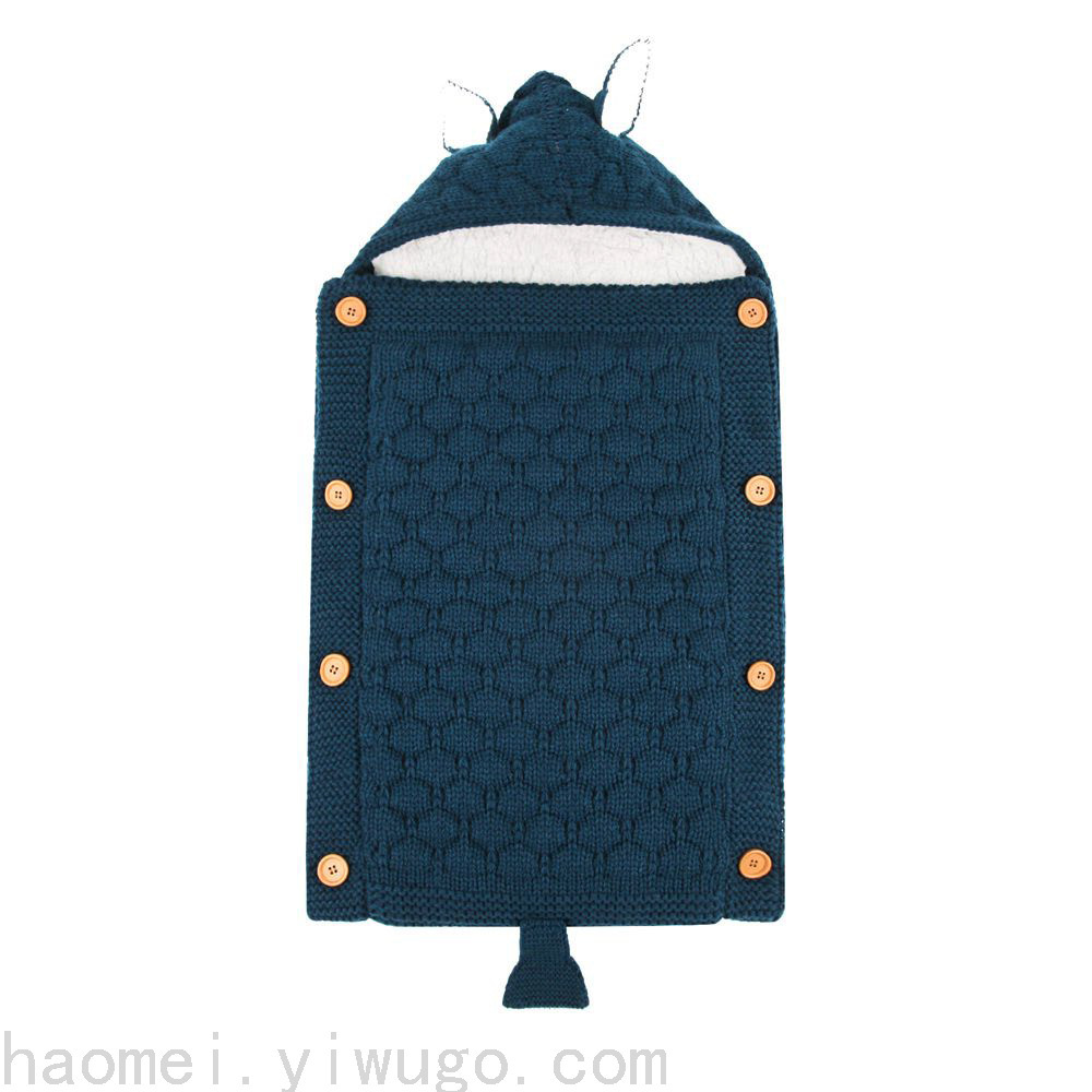 En otoño e invierno, el saco de dormir del carrito del bebé nuevo, botones de punto europeos y estadounidenses más terciopelo para mantenerse caliente, mini orejas y cola pequeña, saco de dormir