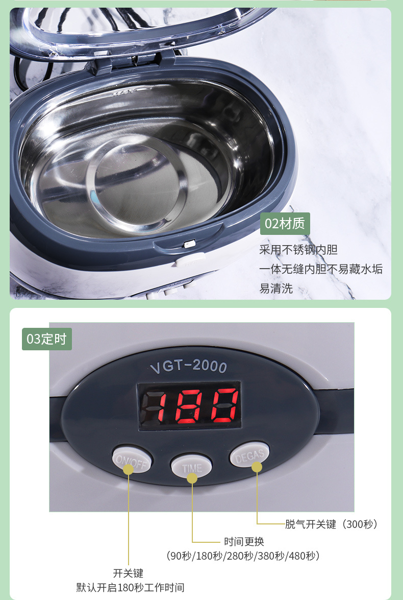 La pequeña máquina de limpieza ultrasónica vgt - 2000 es adecuada para la limpieza y desinfección de objetos pequeños y se puede utilizar regularmente.