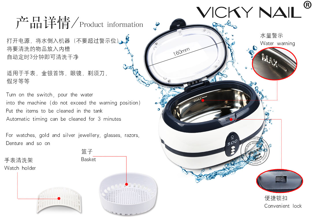 Hermosa máquina de limpieza ultrasónica de manicura de dedos, reloj, joyería de oro y plata, dentadura postiza, máquina de limpieza doméstica 600ml