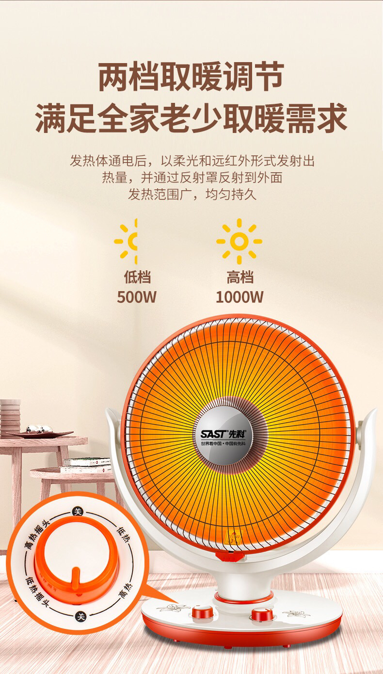 Calentador solar pequeño de alta gama 800W calentador eléctrico doméstico silencioso dormitorio Oficina estufa de horno de luz oscura al por mayor