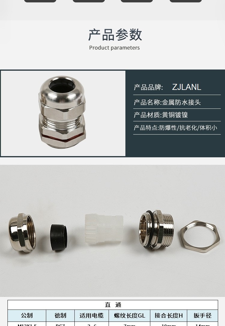 Relleno roscado exterior de la cabeza de fijación del cable recubierto de cobre y níquel a prueba de agua del cable de unión metálica