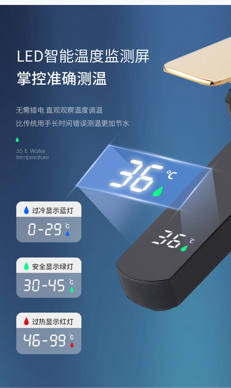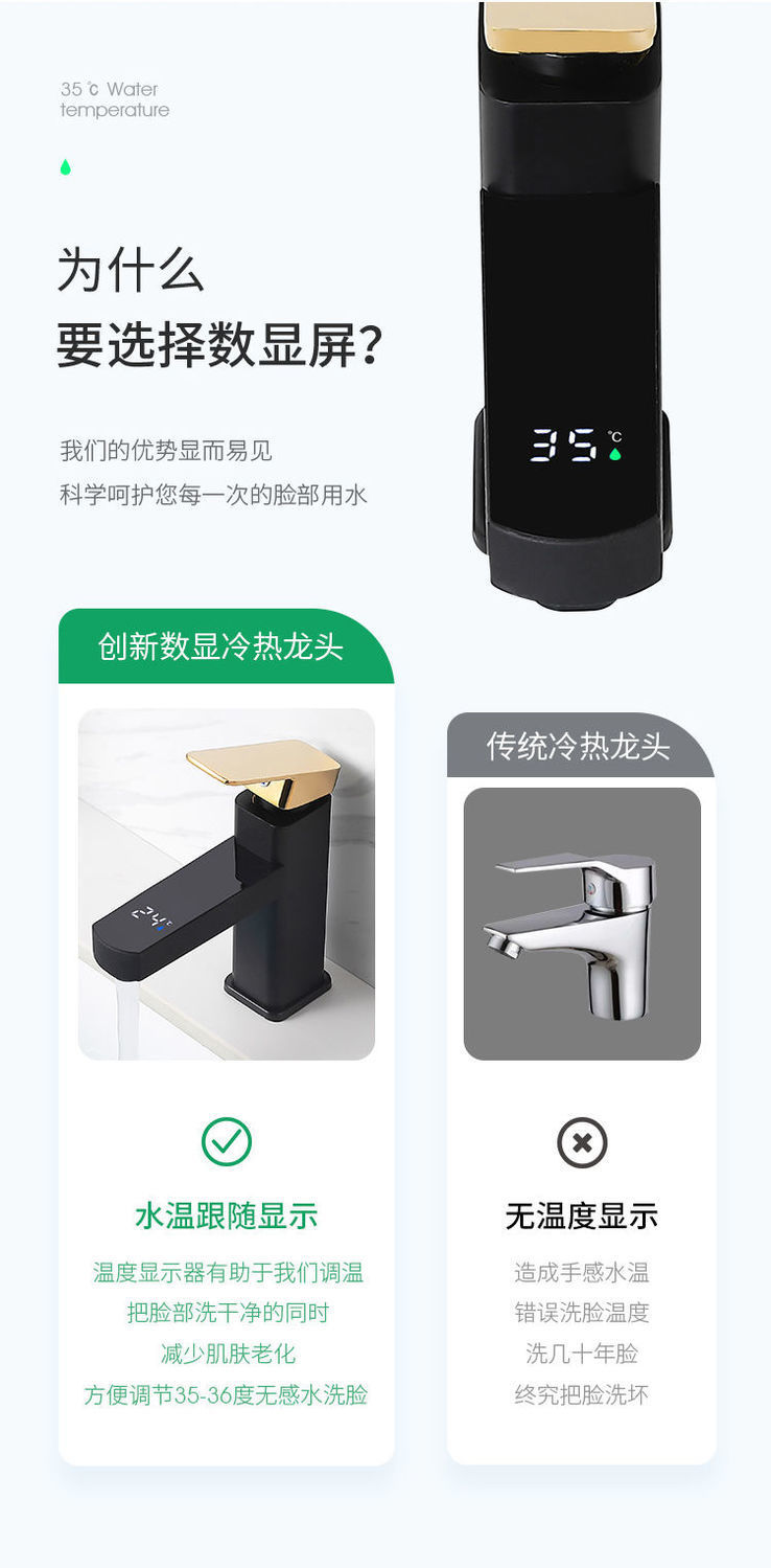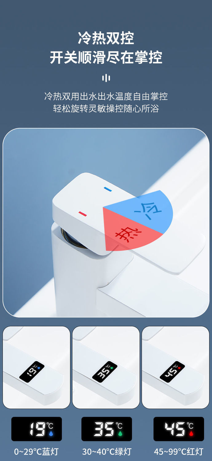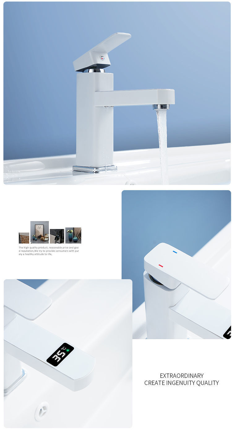 Pantalla digital de control de temperatura de porcelana blanca, lavabo, grifo frío y caliente, baño, cocina, grifo inteligente de visualización de temperatura