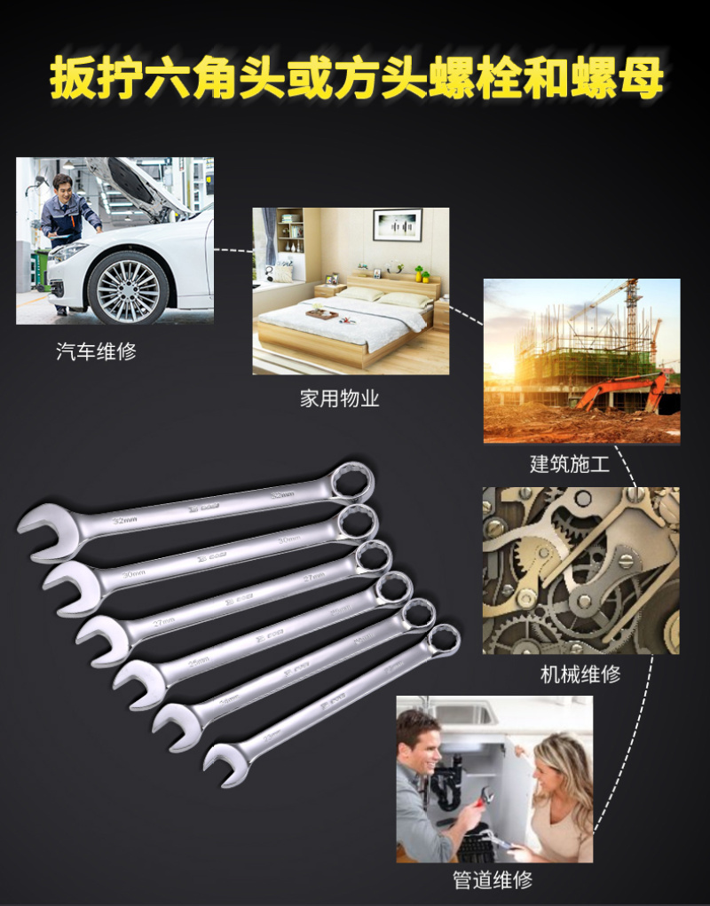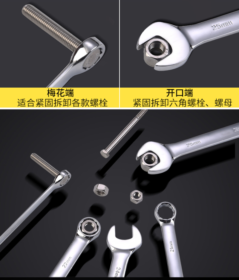 Llave de anillo de doble uso espejo persa llave de anillo abierta llave de anillo abierta herramienta de hardware de reparación de automóviles llave de anillo sólida de 6 - 32 mm genuina