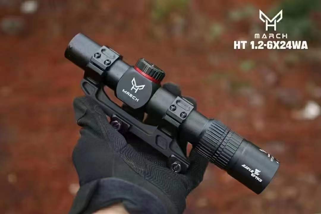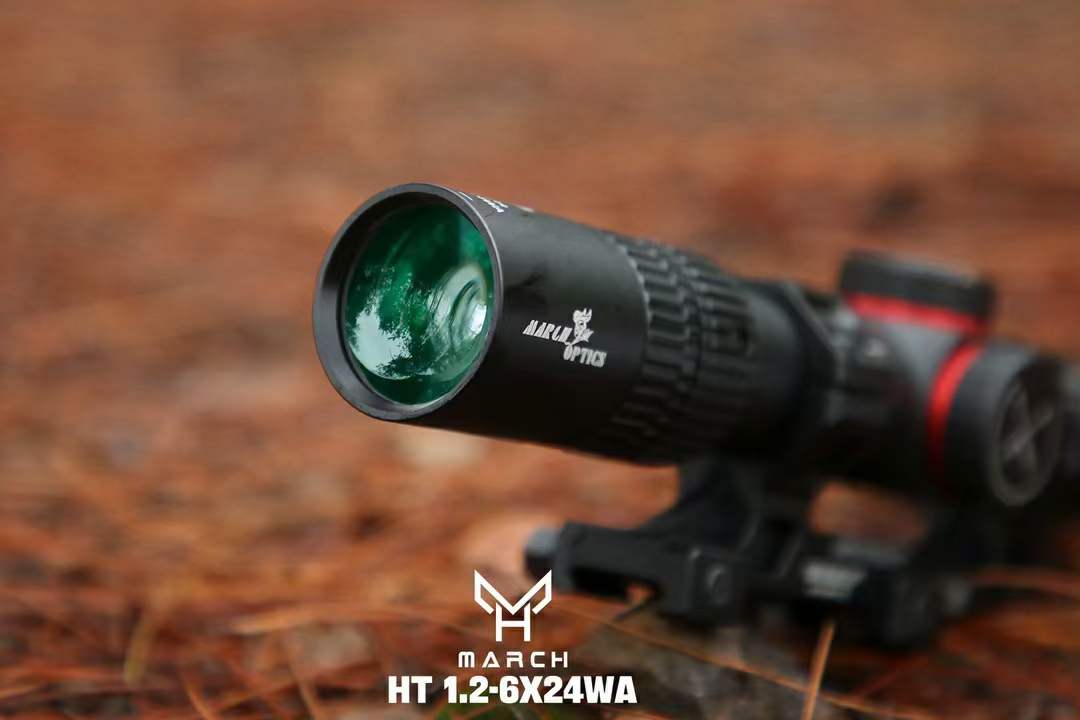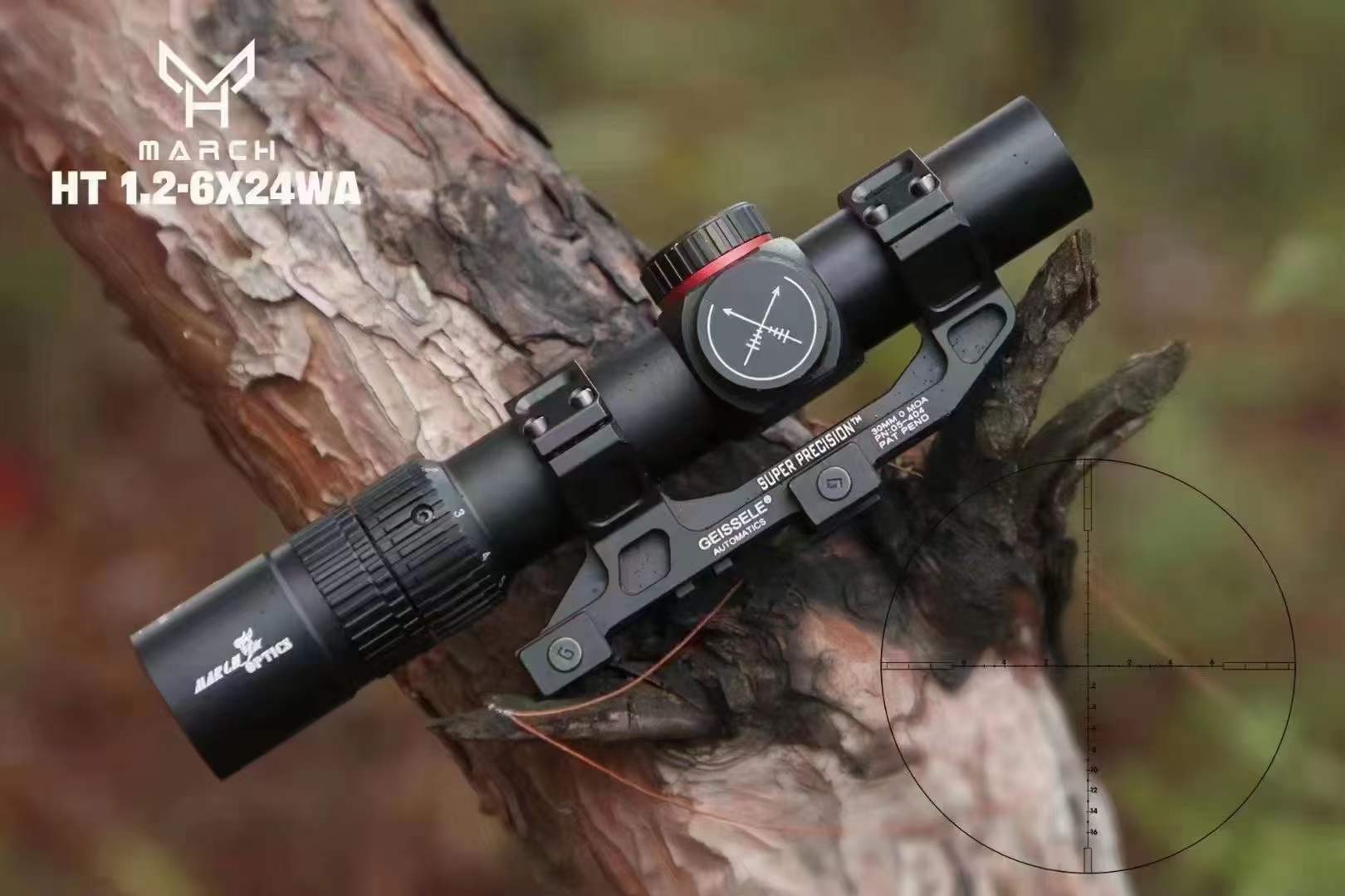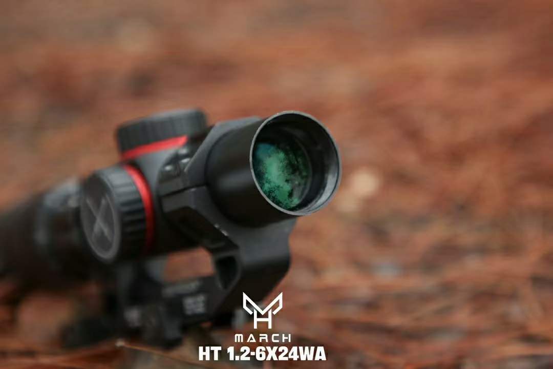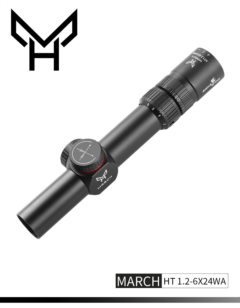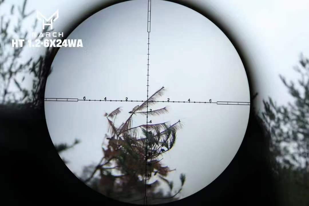 Entrando en la mira ht1.2-6x24 wa, la mira cruzada tiene doble altura variable, alta definición y alta velocidad sísmica, y la mira es de 20 mm.