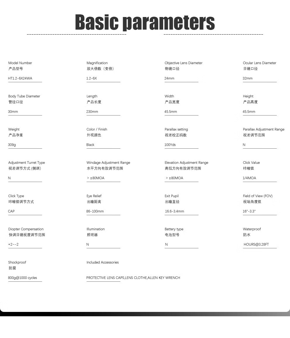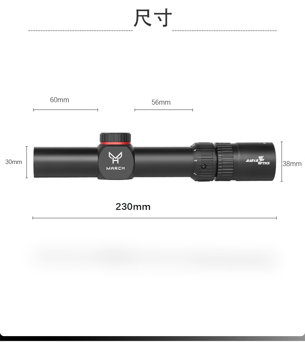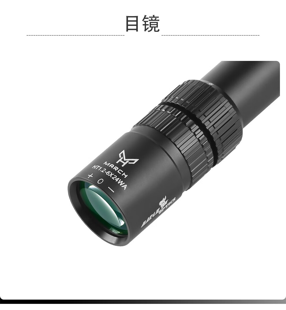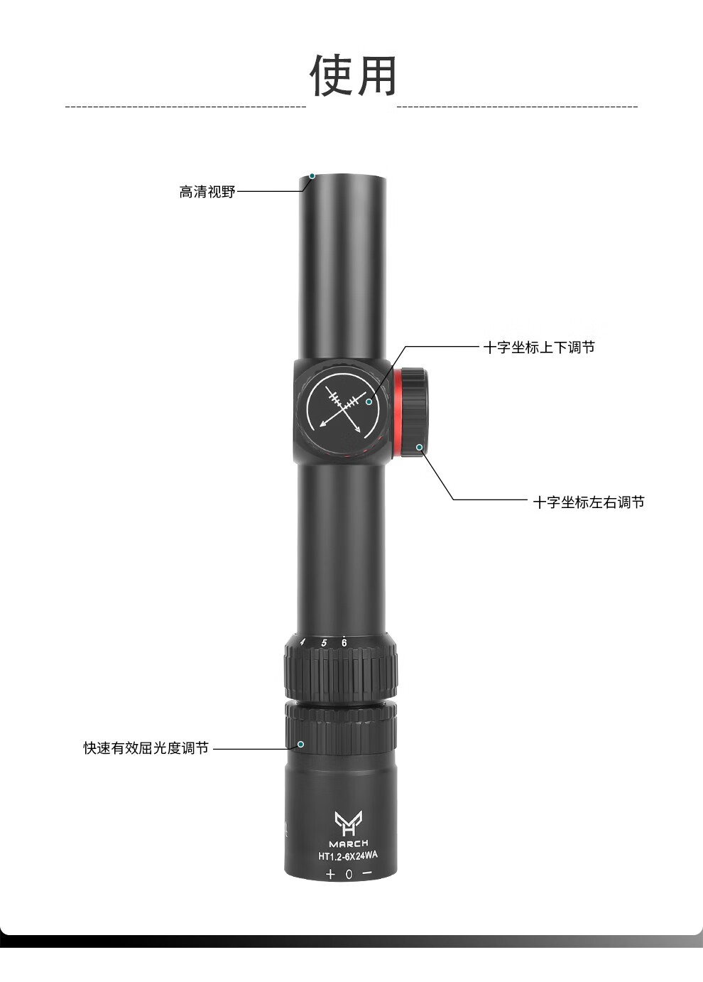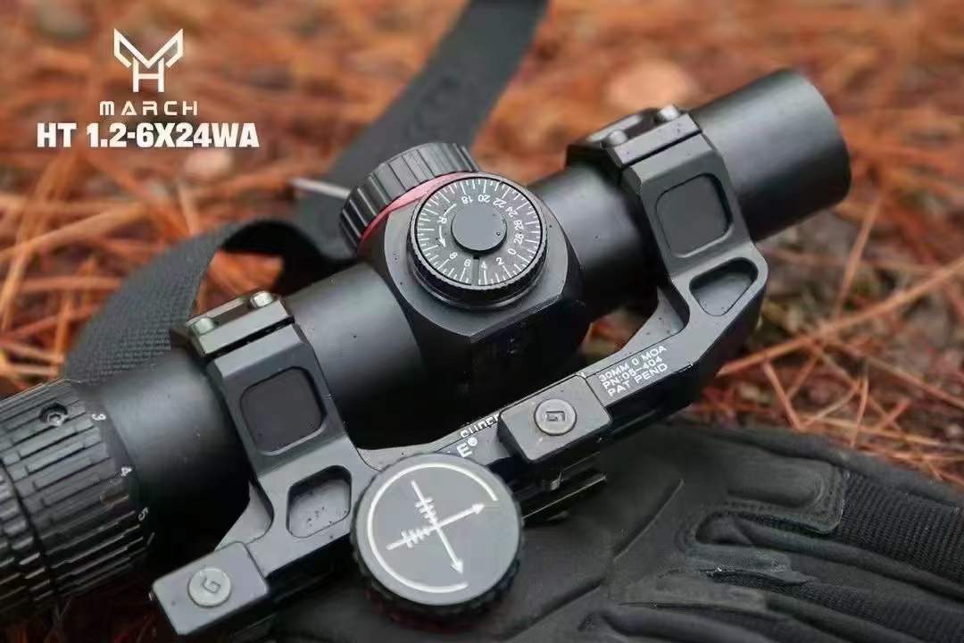 Entrando en la mira ht1.2-6x24 wa, la mira cruzada tiene doble altura variable, alta definición y alta velocidad sísmica, y la mira es de 20 mm.