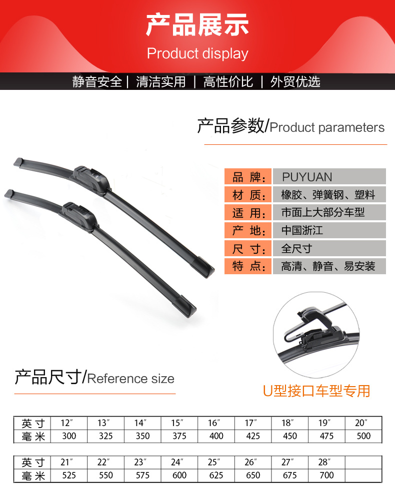 El limpiador de limpiaparabrisas universal en forma de u soporta el procesamiento OEM para personalizar las hojas de limpiaparabrisas sin hueso.
