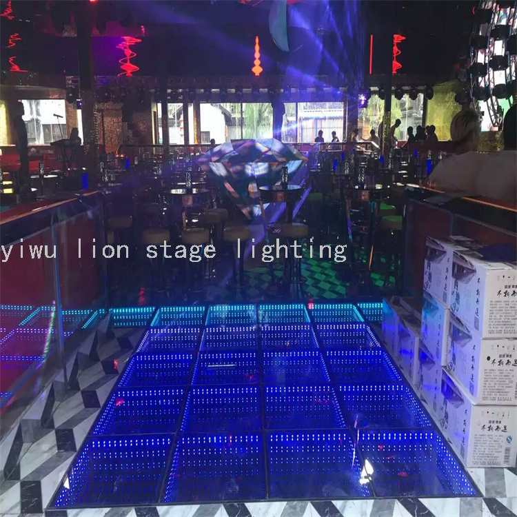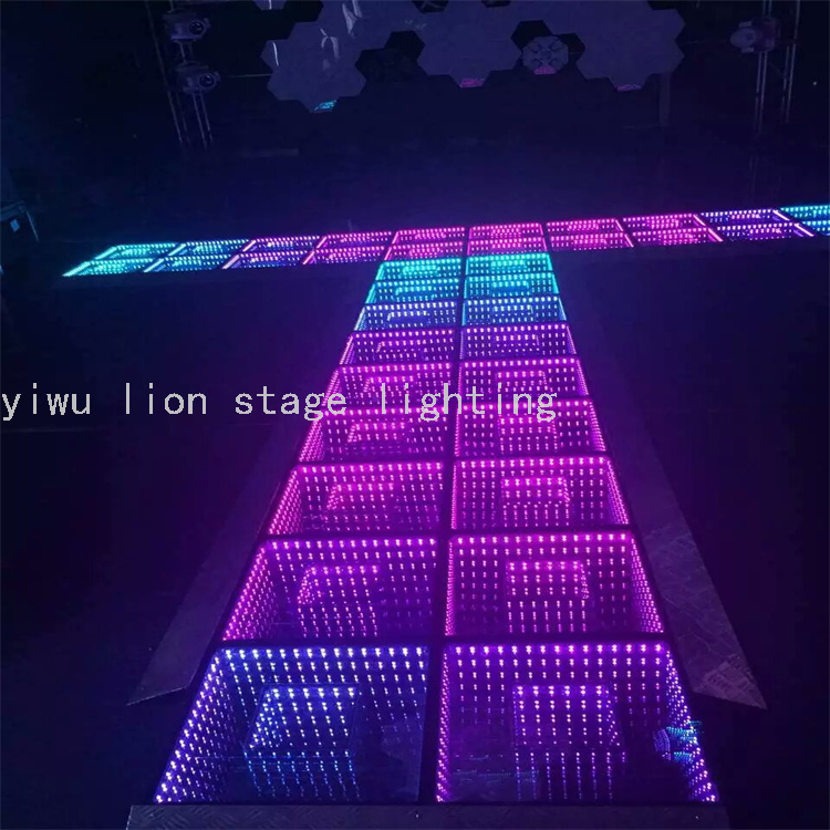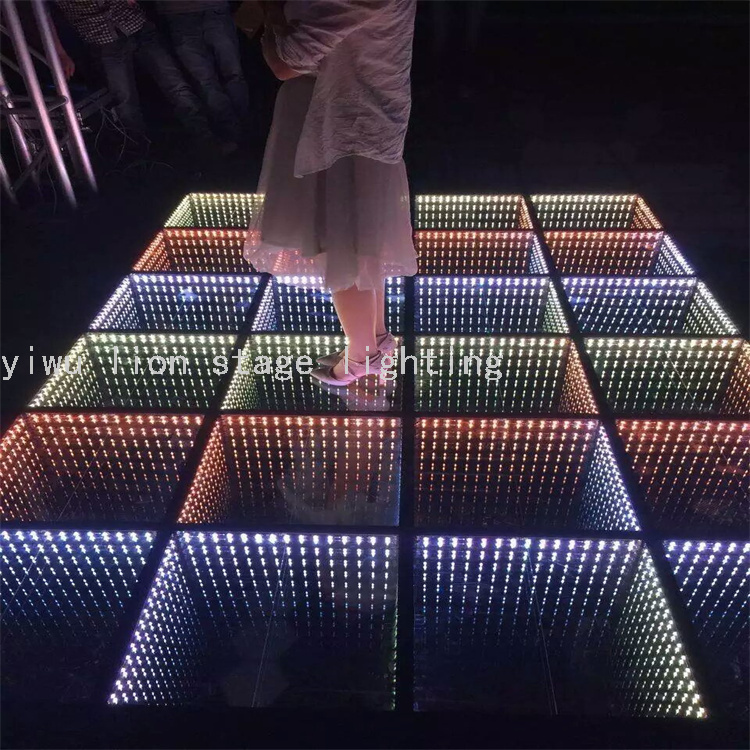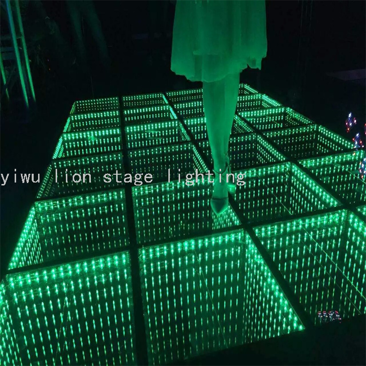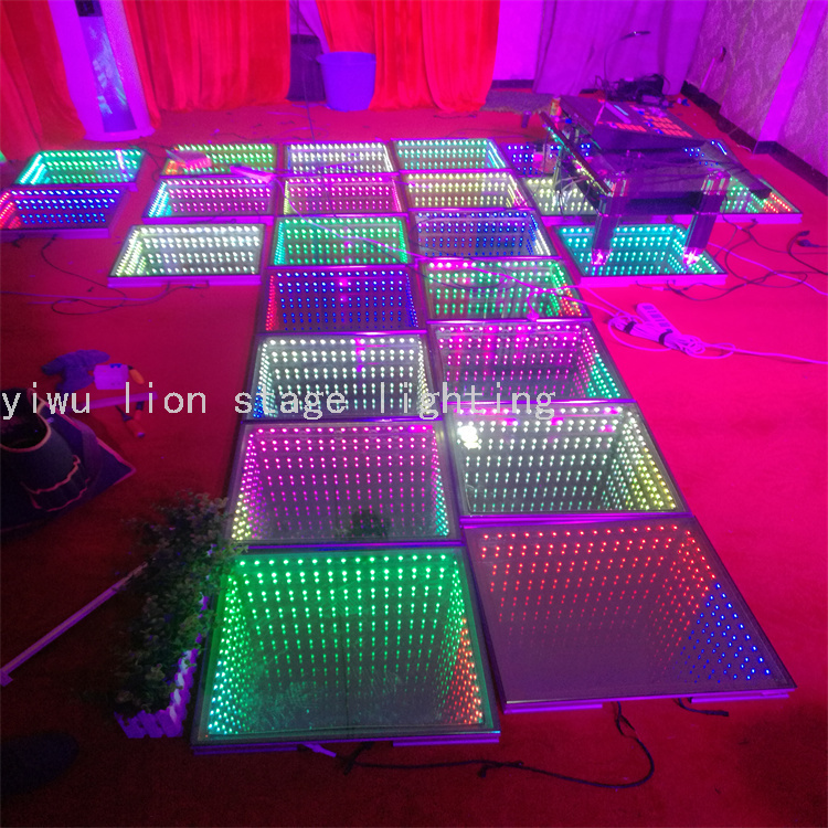 El fabricante vende directamente la inducción led a todo color neón escenario de vidrio templado, azulejos de suelo impermeables espejo abismo baile 3D