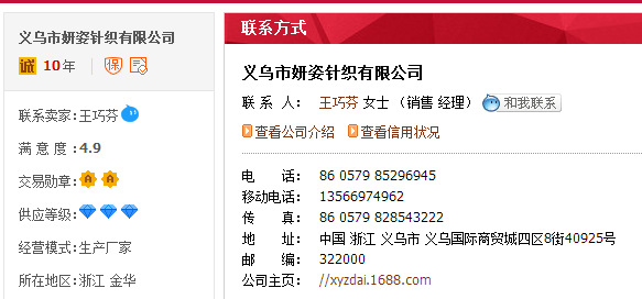 义乌市妍姿针织有限公司位于交通方便,日益繁荣的小商品集散地义乌市.义乌市地处浙江省中部,是中国主要的小商品流通中心。这座令海内外经济界为之瞩目的城市,拥有中国乃至亚洲主要的工业消费品批发市场------中国国际商贸城。商品销往全国各地和世界五大洲90多个国家和地区。义乌交通非常便利,客货运输直达全国百余个大中城市。
