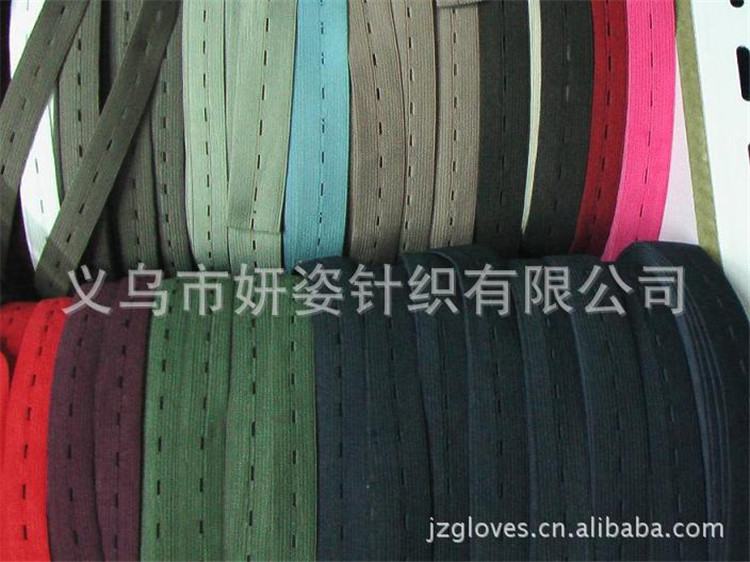 扣眼松紧带,有卷装和横式包装,材料为进口的乳胶和涤纶低弹丝,黑色白色有现货,支持染色,染色有起订量,不够起订量外加200元染色费。不同的宽度起订量不同,可以咨询客服。1.5cm以下4000-5000米起订,2.0cm以上3000米起订。一般用于儿童可调节松紧带裤腰和孕妇裤裤腰,用途广泛,本月主打产品,价格实惠。现货充足,欢迎有需要的客户订购。
