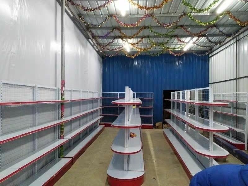 Estantes de supermercados estantes de tiendas de conveniencia de un solo lado y dos lados estantes de exhibición de tiendas de aparejos de pesca estantes de grandes almacenes estantes de malla trasera estantes semicircular