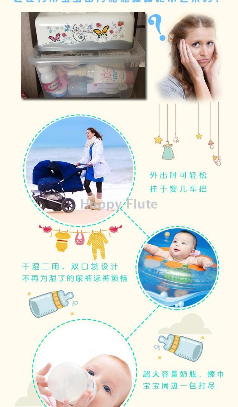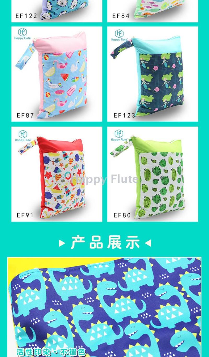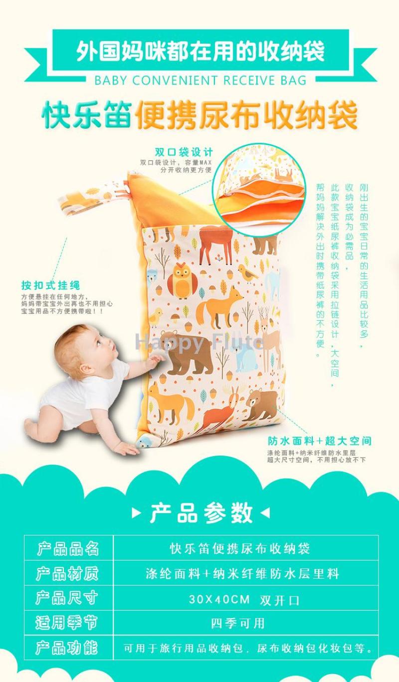 因happyflutelogo颜色由原来的橙色改为蓝色,新标旧标标混合着发货,亲如果收到蓝色标志不要惊讶,这是我们刚更新的logo。 【设计】双拉链双口袋多花色 宝宝专用防水印花双拉链尿布袋 经济环保 小额批发