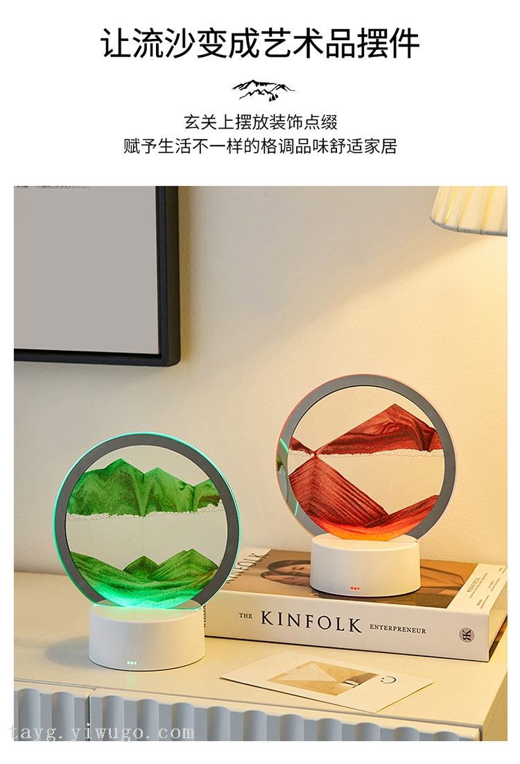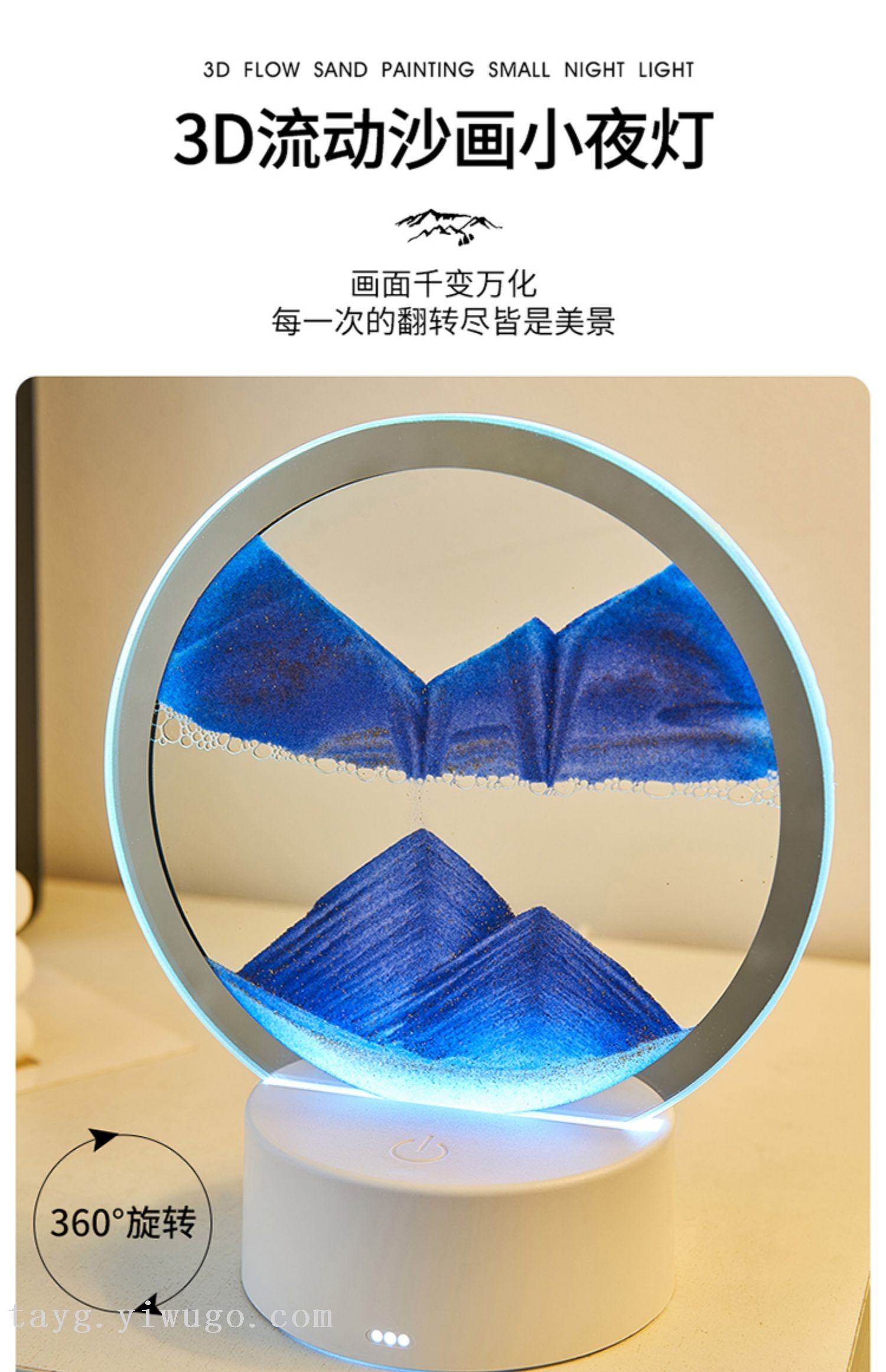 Decoración de pintura de arena movediza de escritorio lámpara de reloj de arena dinámica 3D lámpara de noche tridimensional lámpara de mesa de cama del dormitorio