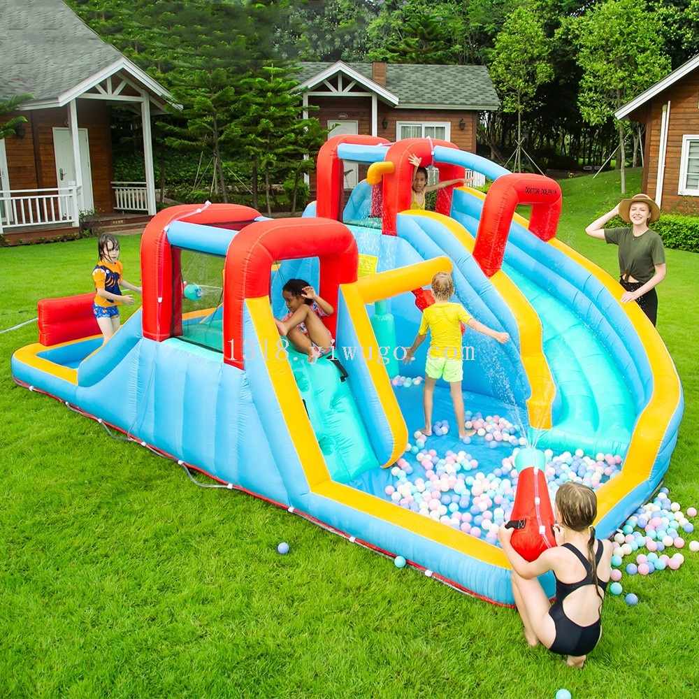 Los fabricantes de Yiwu venden directamente castillos inflables para niños, camas de chorro de agua inflables, castillos de doble tobogán para niños, camas de salto inflables pequeñas