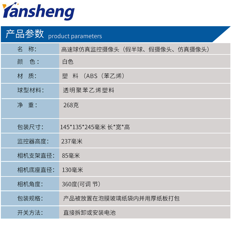 Asustar a los ladrones Cámara de simulación de bola de alta velocidad Monitor de cámara falsa modelo de cámara falsa sonda de vigilancia falsa con luz a prueba de lluvia
