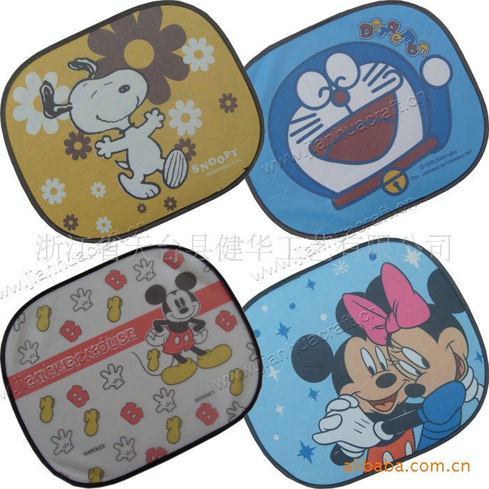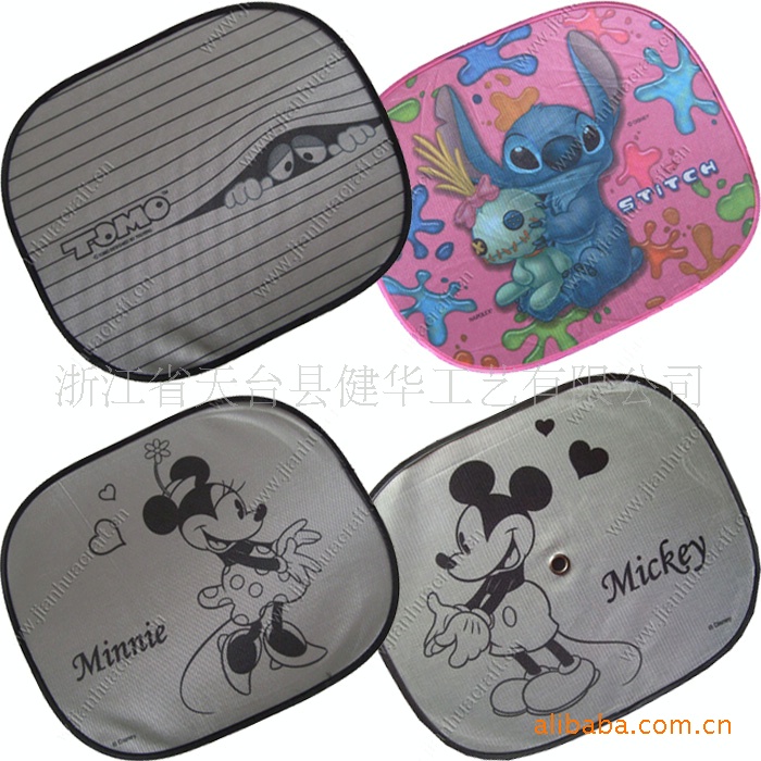 产品说明】 太阳对汽车直射的危害-- 高强度的阳光会使车内温度急剧升高,使人进车的时候感觉异常炎热,难以忍受。还有由于温度过高会损伤到车内的真皮内饰。所以夏季或天热的时候,遮阳产品是不能少的。 1、夏天行车时,利用本品配带的吸盘固定于汽车玻璃上,可有效遮挡阳光照射。 2、网眼型设计,使驾驶过程更安全,更具散热功能。 3、卡通造型,可以把您的爱车装扮的很漂亮,让您保持好心情! 4、安装简单、拿取方便,很实用。 【使用方法】 1、安装时,将吸盘用力吸在汽车侧窗玻璃上即可使用; 2、吸盘的使用技巧: (1)吸附前最好先将汽车玻璃擦洗干净,吸附力会更大些; (2)吸盘因为运输难免会稍微变形,如果出现吸附不牢的现象不用紧张,请直接用开水泡一下即可还原使用 (3)遮阳挡的吸盘是通用型的,如果在使用过程中遗失,可以到一些日用店配备即可。 3、当需要作保存时,将遮阳挡交叉摺起即可。 4、建议将遮阳挡安装在车内,以防被盗。 5、产品弄脏后,建议用湿毛巾擦洗即可。不用使用带化学物质的清洁剂。 6、摇下车窗时,请先取下本产品,以免夹入车窗。