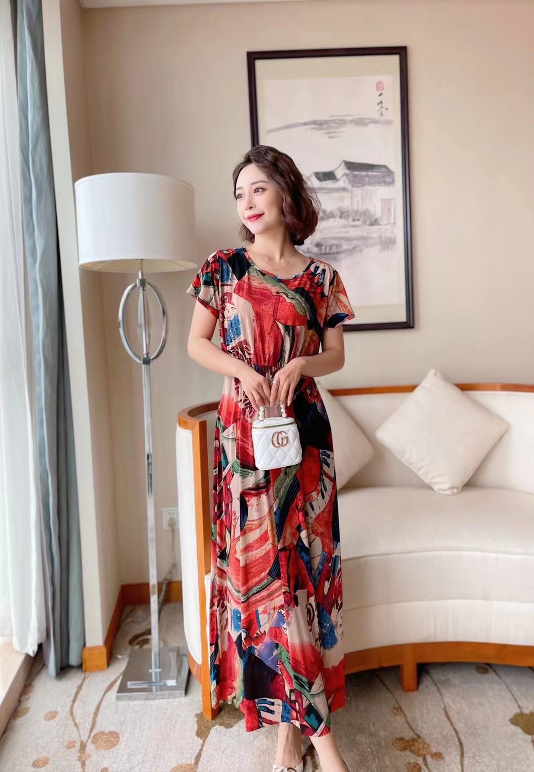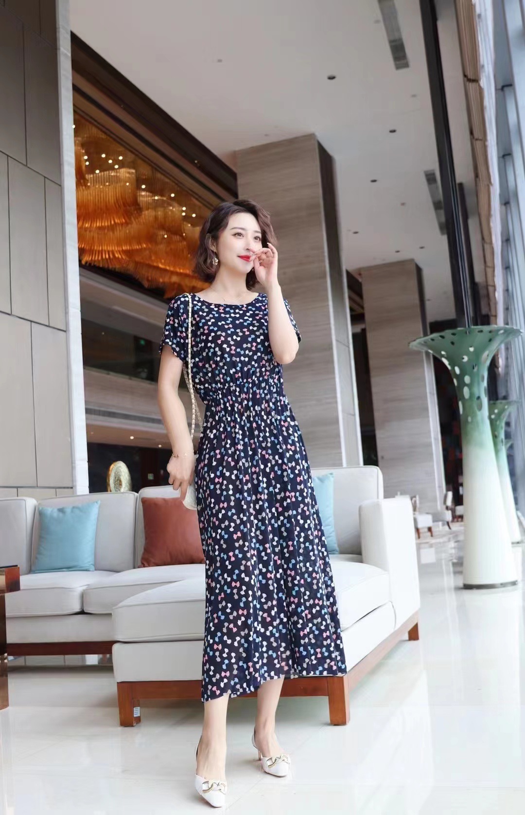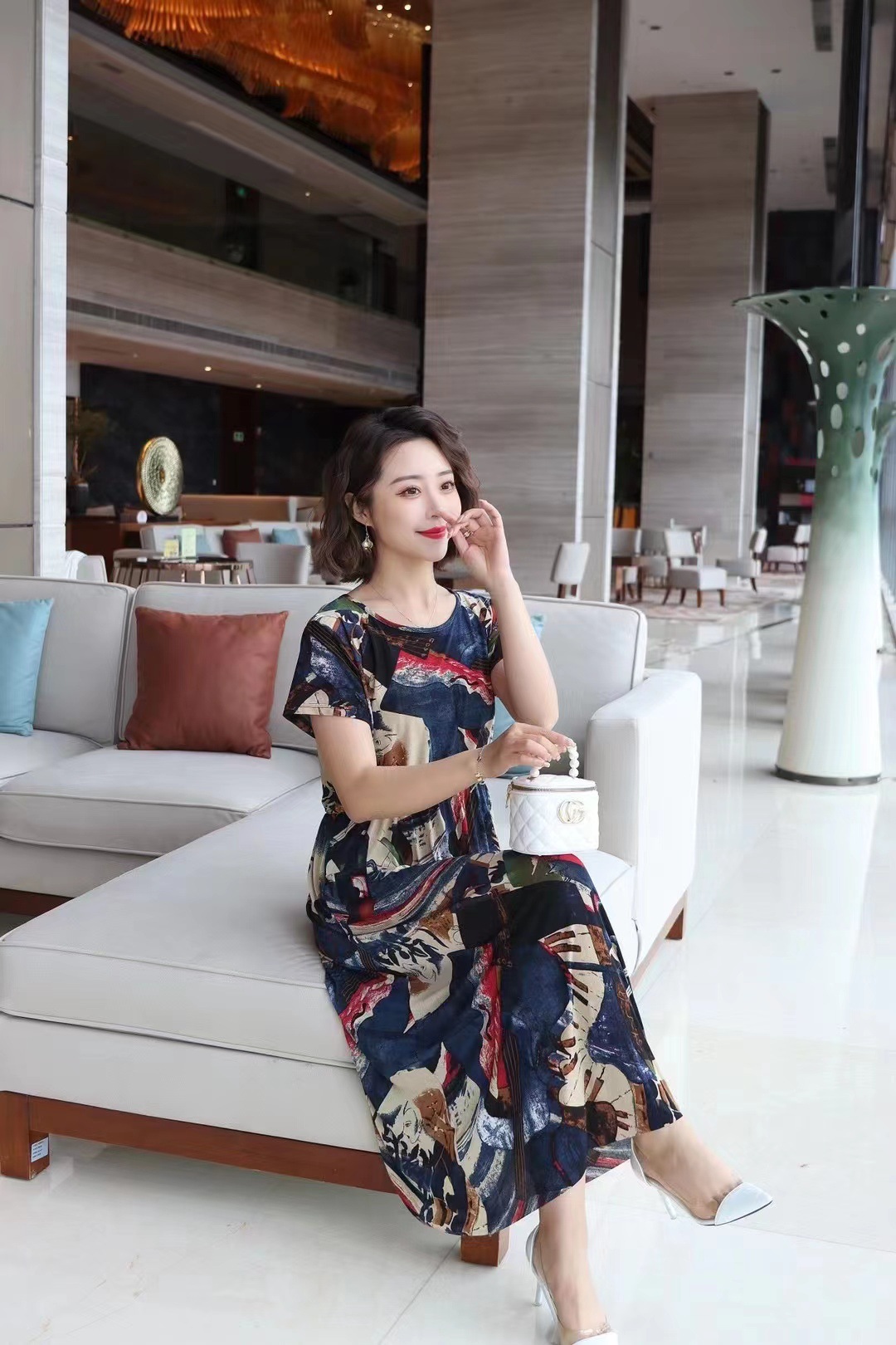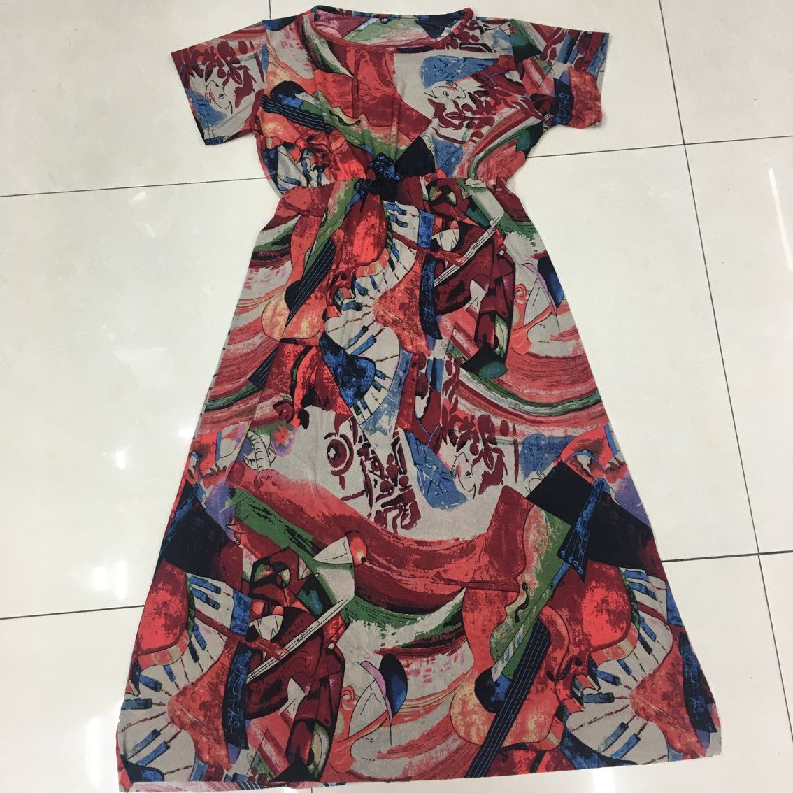 Vestidos femeninos de verano vestidos femeninos estampados de cáñamo de Festival de bambú cómodos, transpirables, gordos y delgados pueden ser simples y generosos vestidos largos coreanos