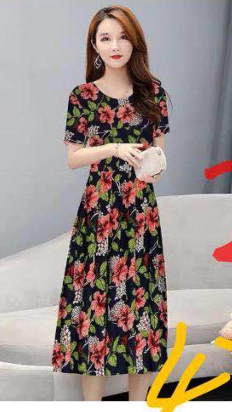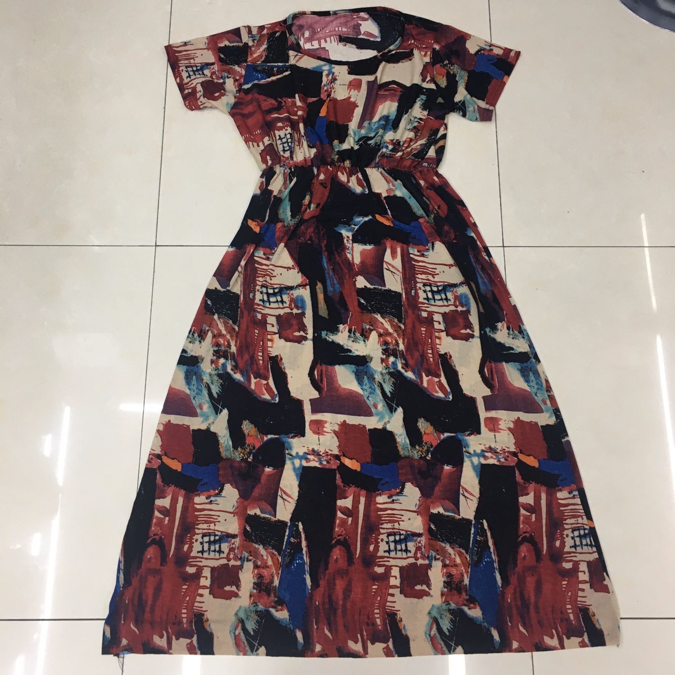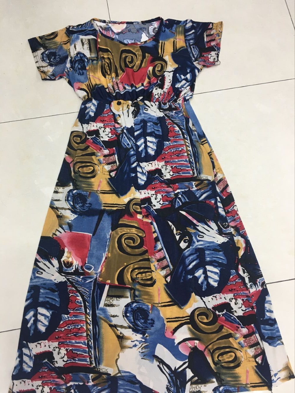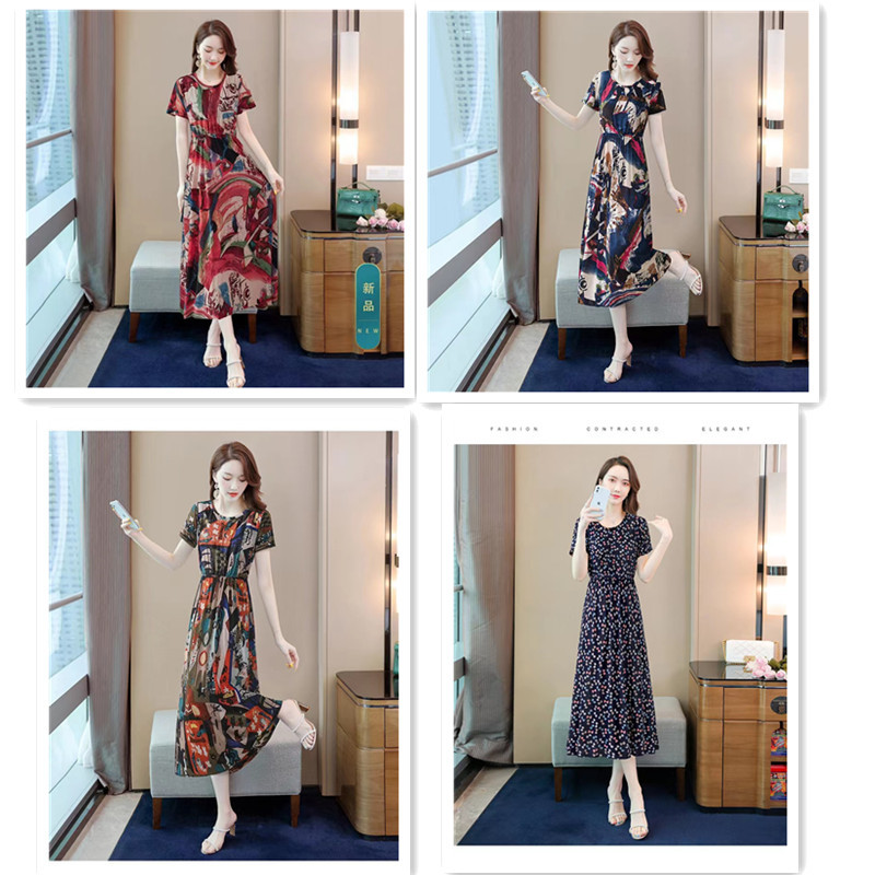 Vestidos femeninos de verano vestidos femeninos estampados de cáñamo de Festival de bambú cómodos, transpirables, gordos y delgados pueden ser simples y generosos vestidos largos coreanos