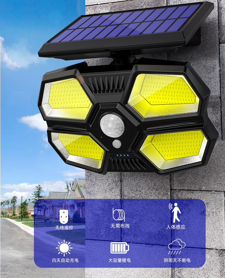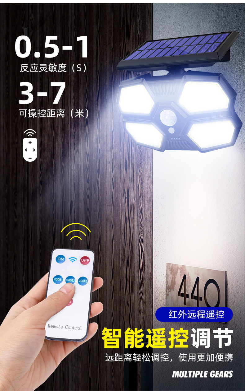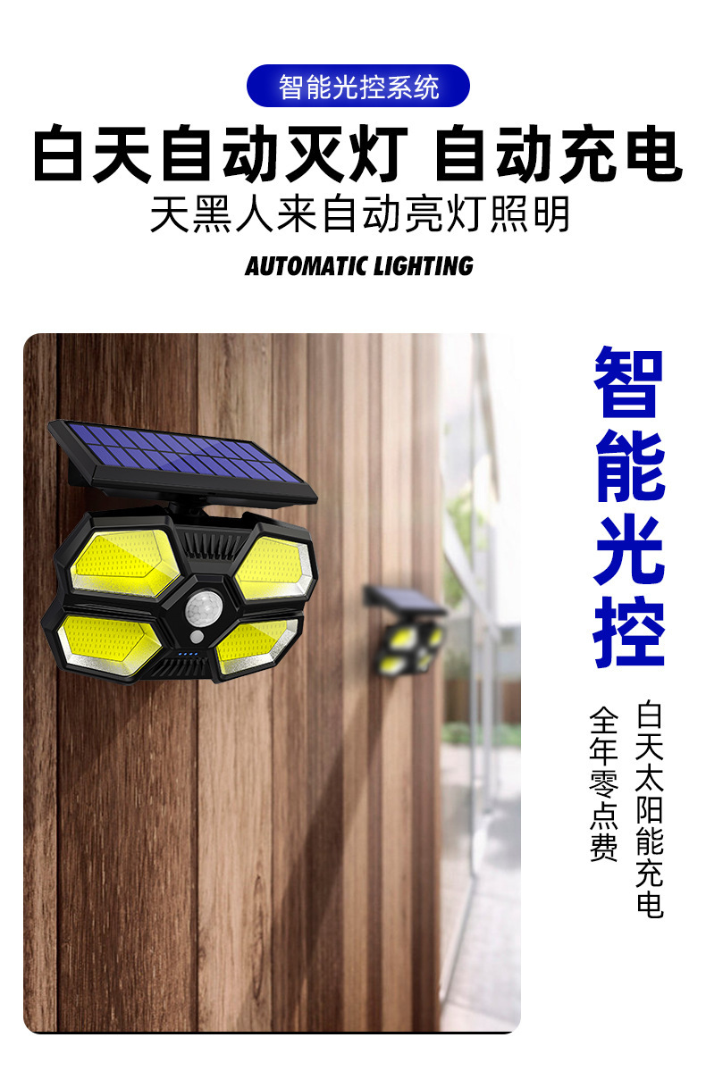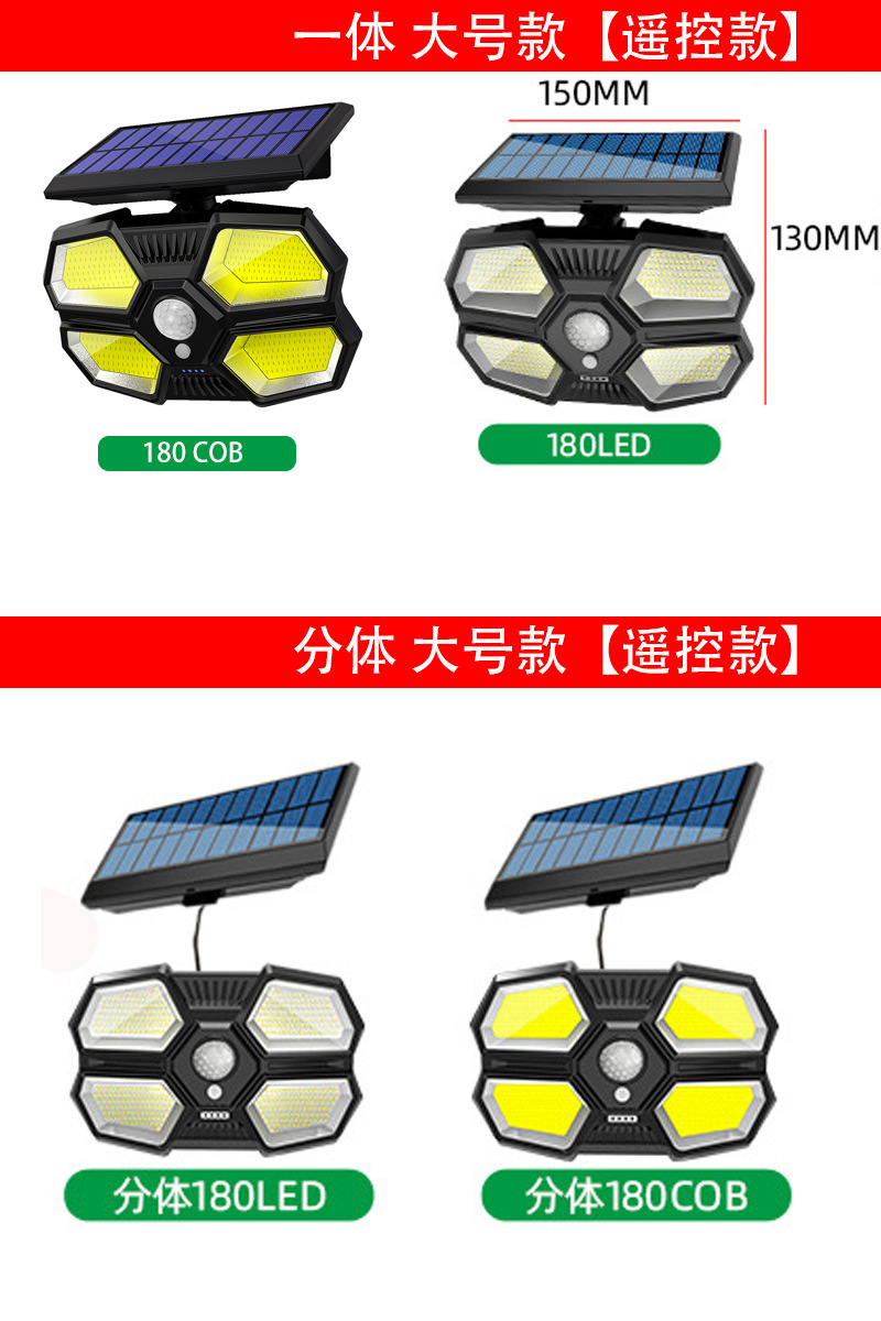 180 lámparas de pared de iluminación de cuentas de luz solar lámparas de carga solar de cuatro lados de iluminación inducción lámparas de patio usuarios pared exterior