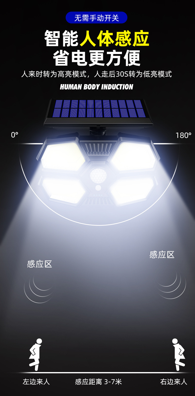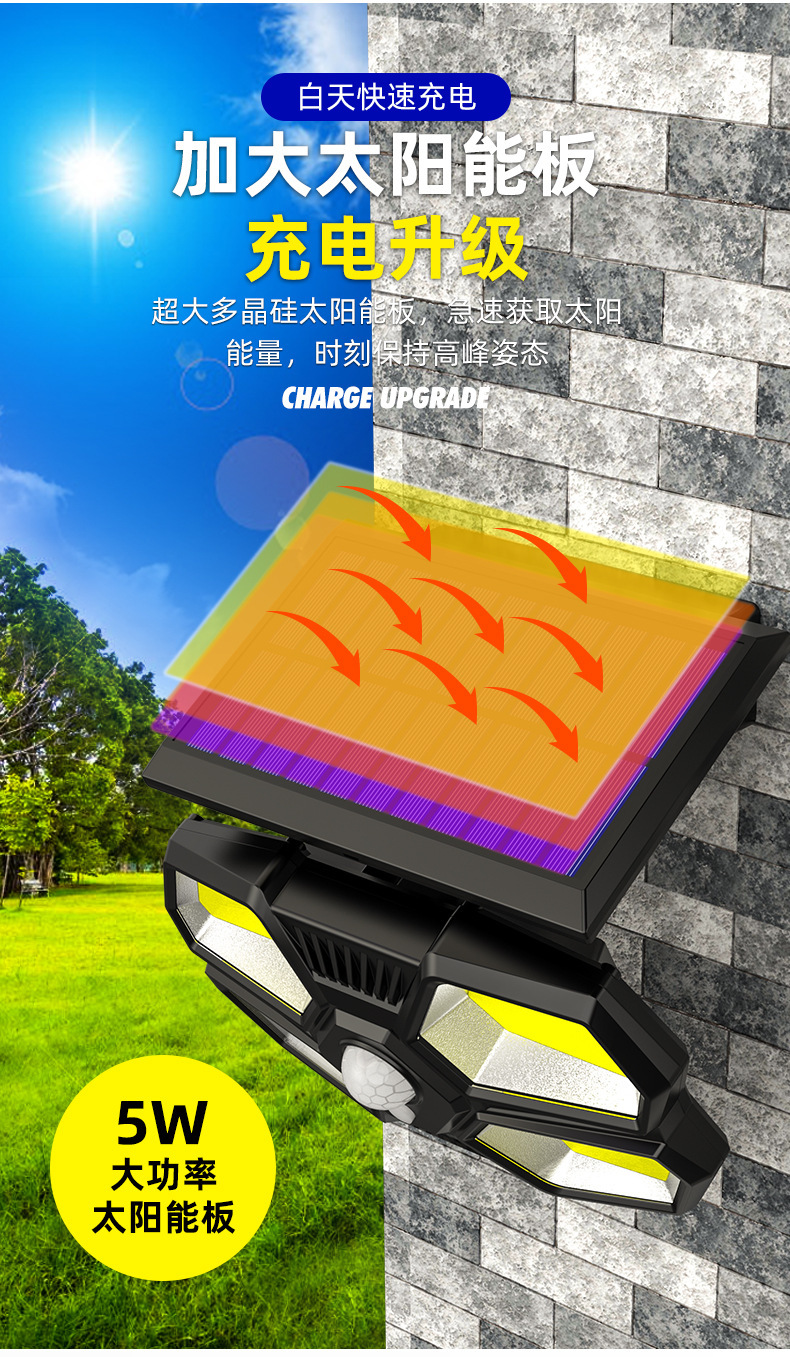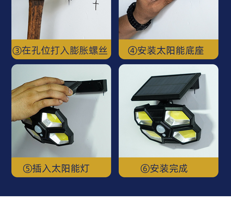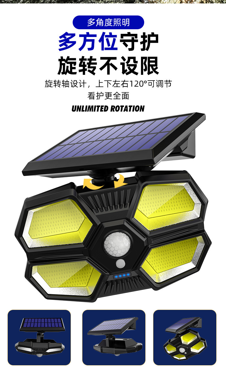 180 lámparas de pared de iluminación de cuentas de luz solar lámparas de carga solar de cuatro lados de iluminación inducción lámparas de patio usuarios pared exterior