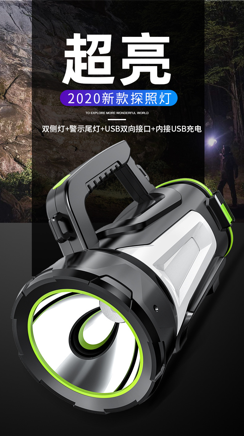 Venta caliente transfronteriza de linternas portátiles de luz fuerte linterna multifuncional de carga impermeable reflector de emergencia al aire libre Lámpara LED al aire libre