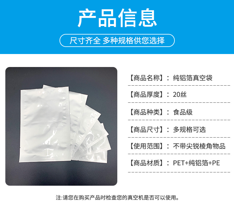 Bolsa de vacío de papel de aluminio puro engrosada bolsa de embalaje de alimentos máquina de bombeo de vacío de compresión bolsa de máscara de té de papel de aluminio de aluminio