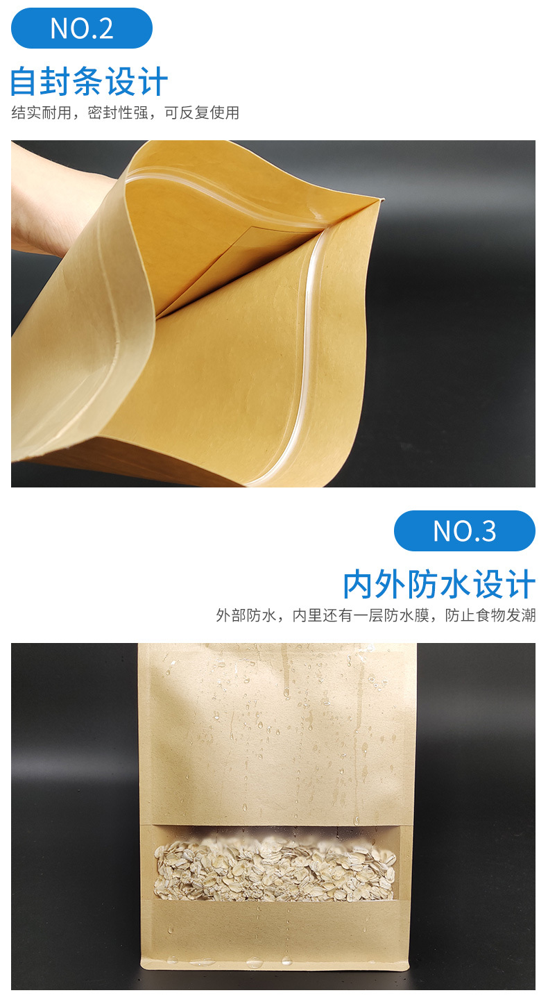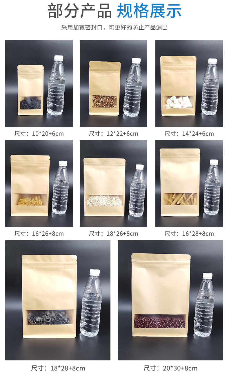 Bolsas de papel Kraft Bolsas autopeinadas autosuficientes engrosan las ventanas abiertas, semillas de té, semillas de melón, carne de res seca, frutas cero, envases pequeños de boca sellada de Alimentos