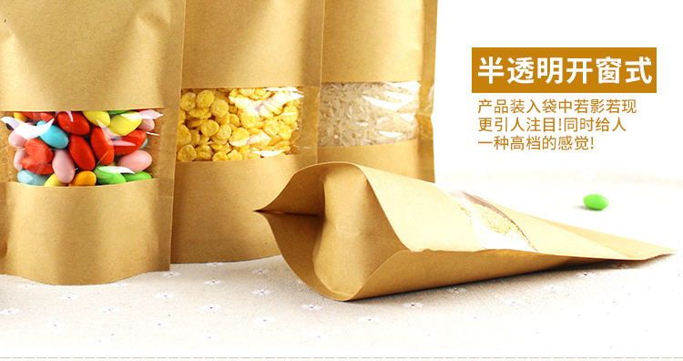 Bolsas de papel Kraft Bolsas selladas de té, alimentos, medicina tradicional china bolsas de embalaje de ventanas abiertas para engrosar bocadillos, bolsas selladas de pastel de Ejiao personalizadas