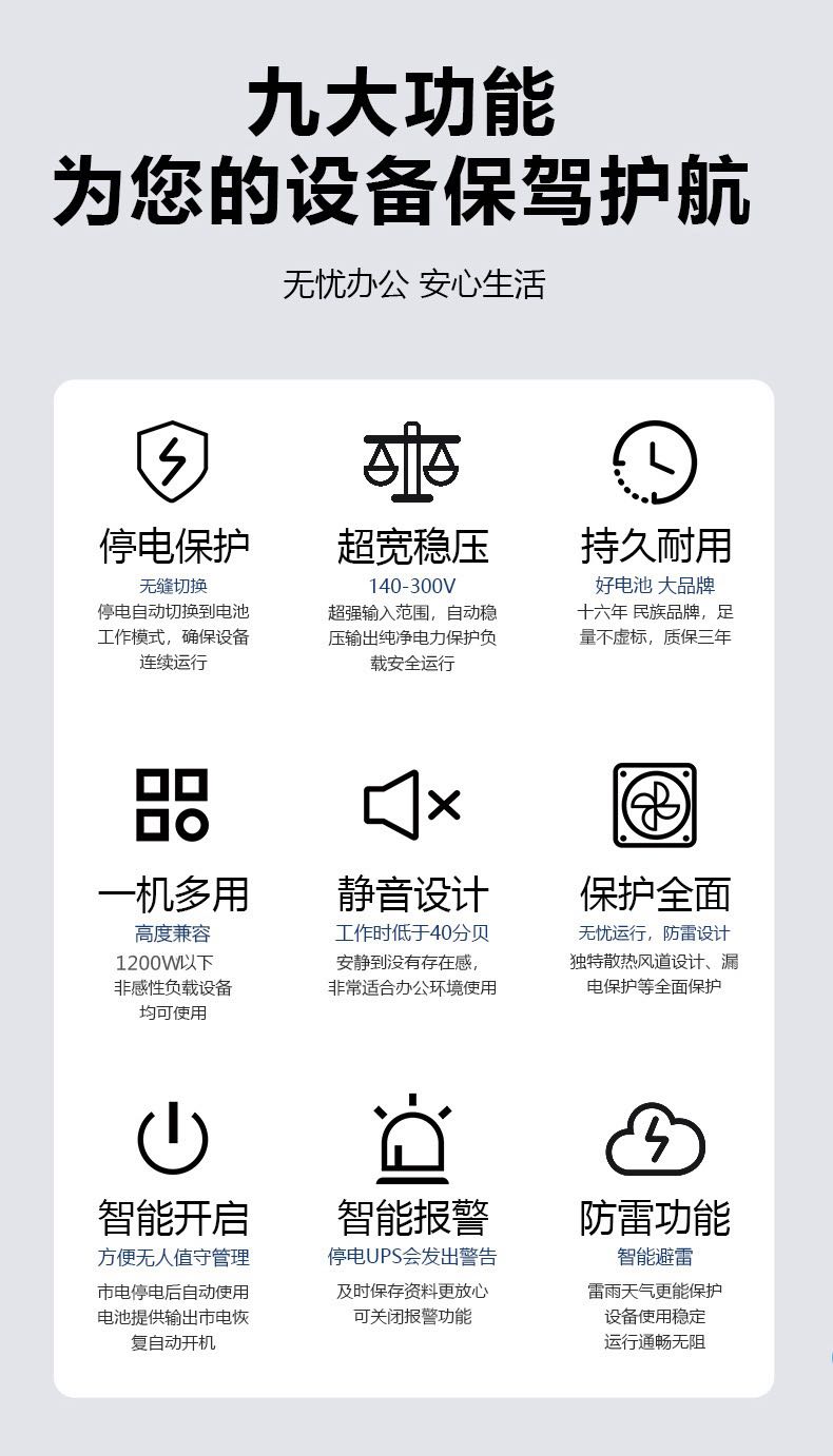 Ups fuente de alimentación ininterrumpida 2000va1200w servidor de Estabilización de tensión de escritorio de repuesto contra cortes de energía ups