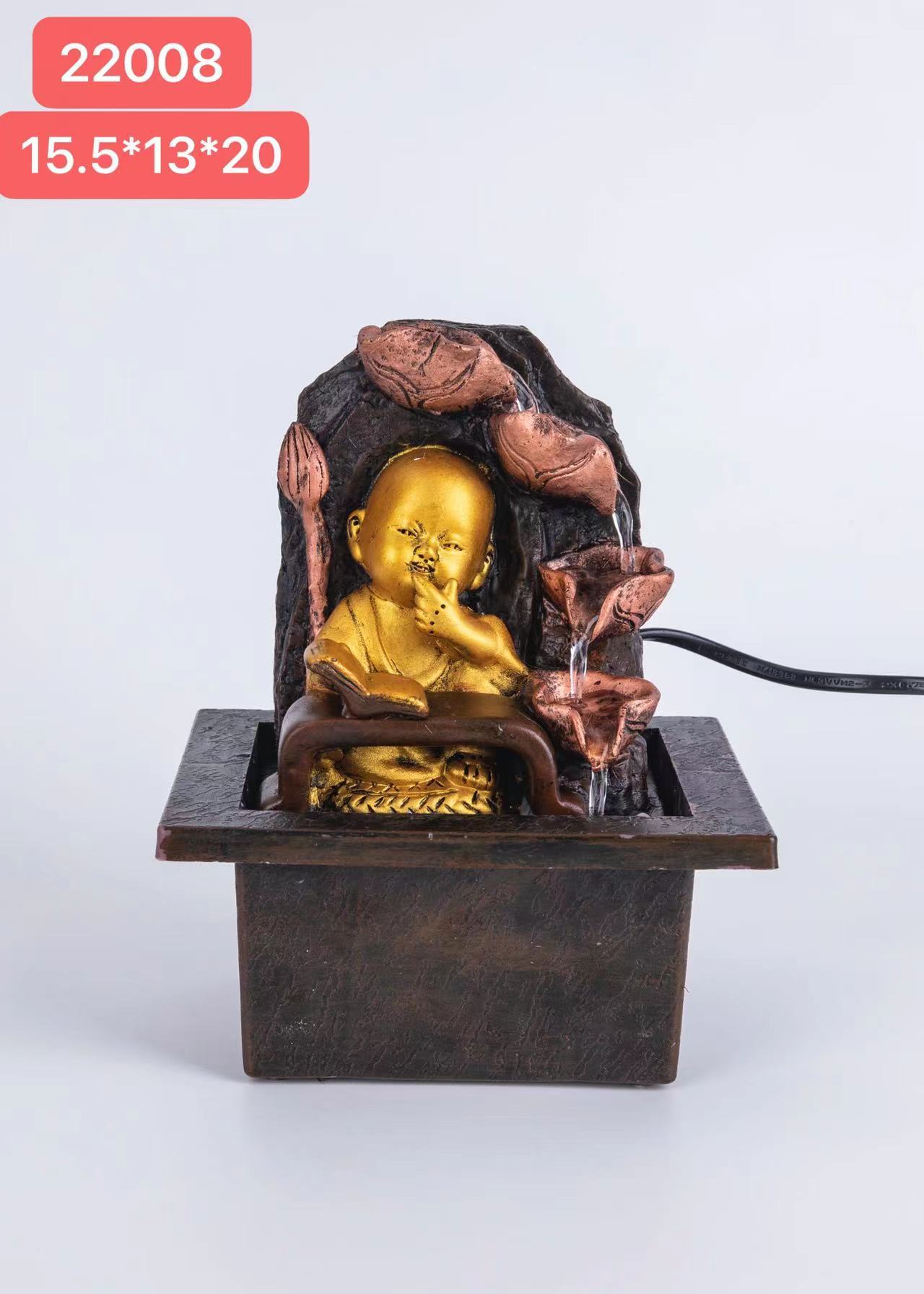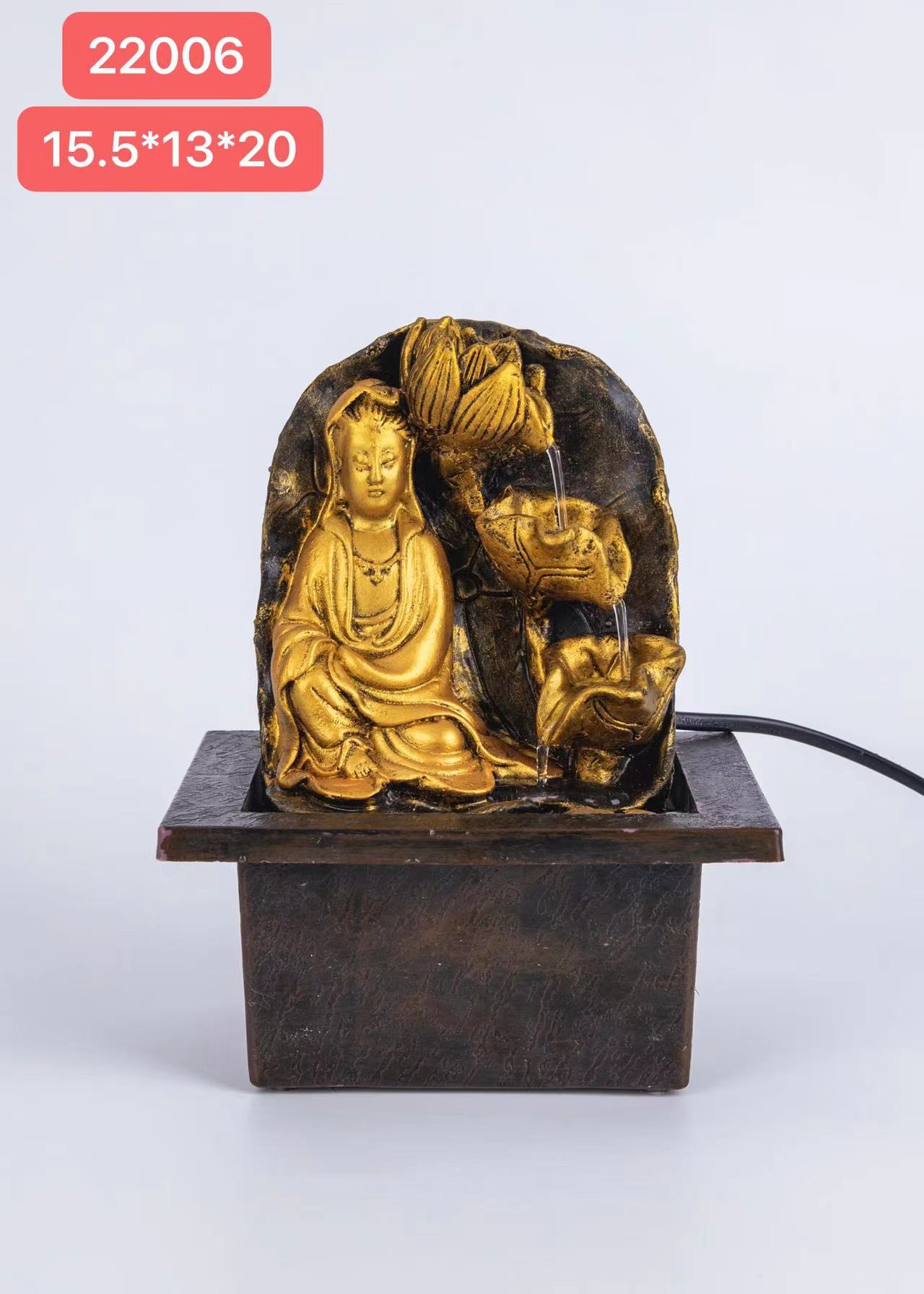 树脂流水喷泉工艺品不仅造型美观,而且是居家吉祥的摆饰。它把自然的景色、流水的声音带到你身边,流动的水更有利于蒸发,一定程度上调节室内的湿度、净化空气,更有利于健康。我们拥有自己的研发团队,可来样订做