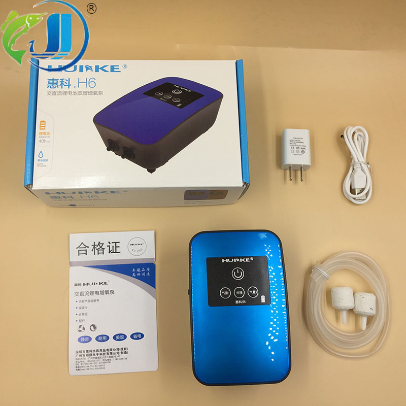 Bomba de oxígeno huike h6 batería silenciosa e impermeable de doble uso de carga bomba de oxígeno pecera acuario aparejo de pesca DC inteligente