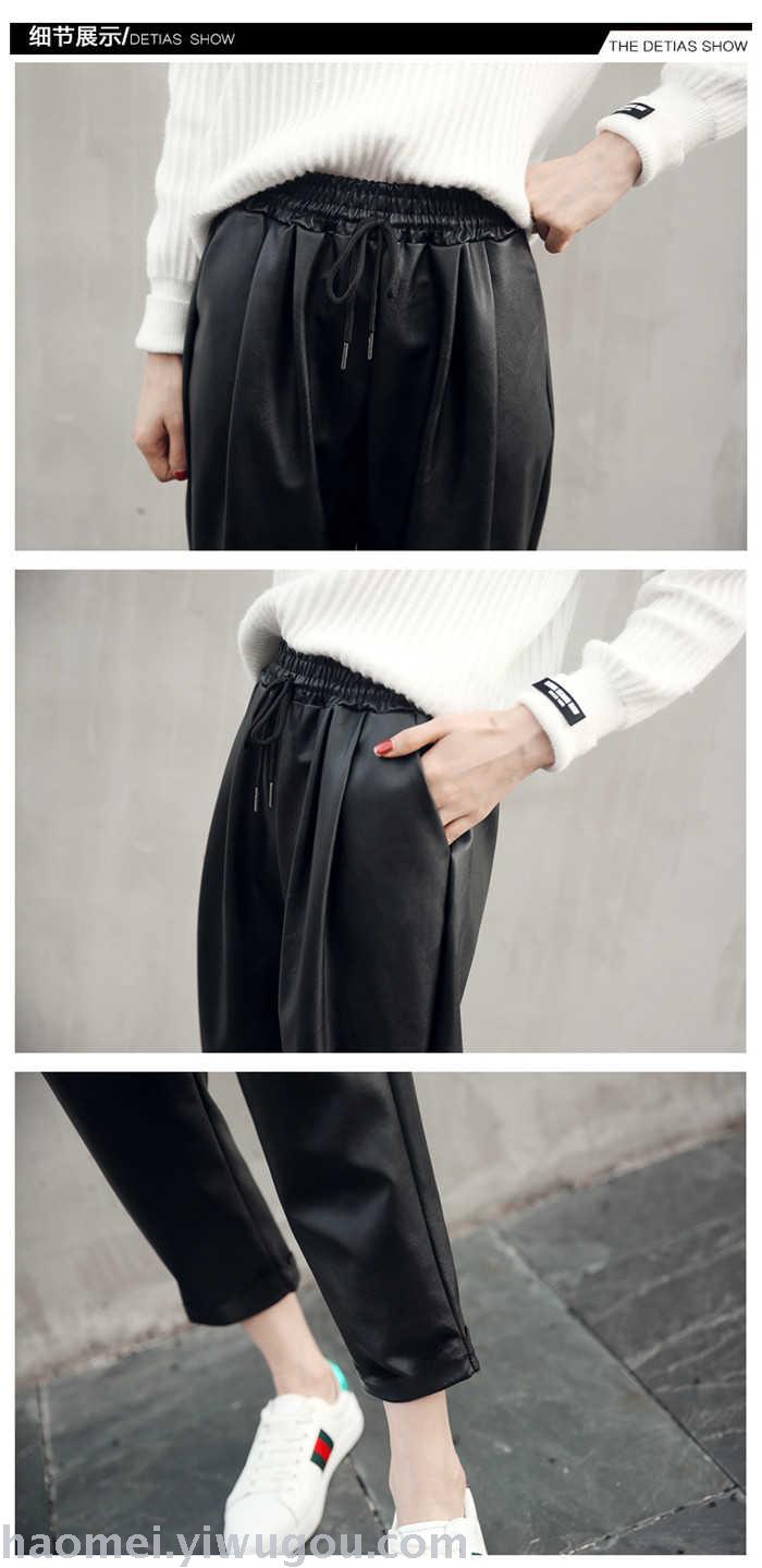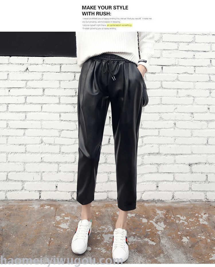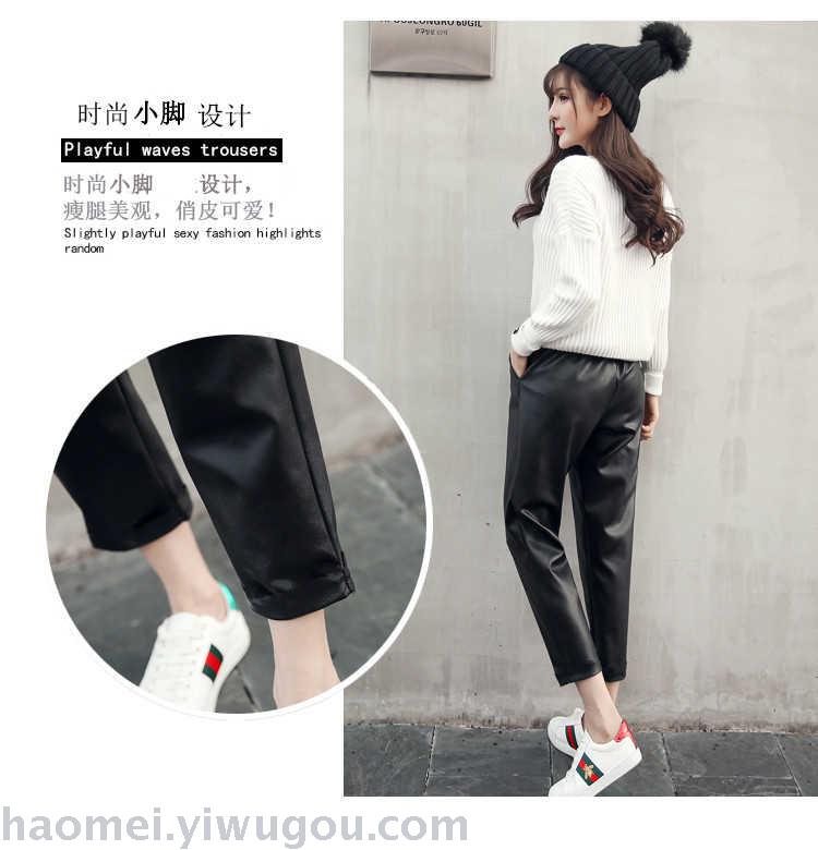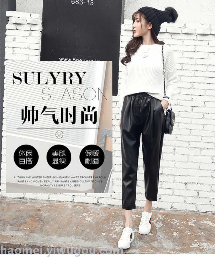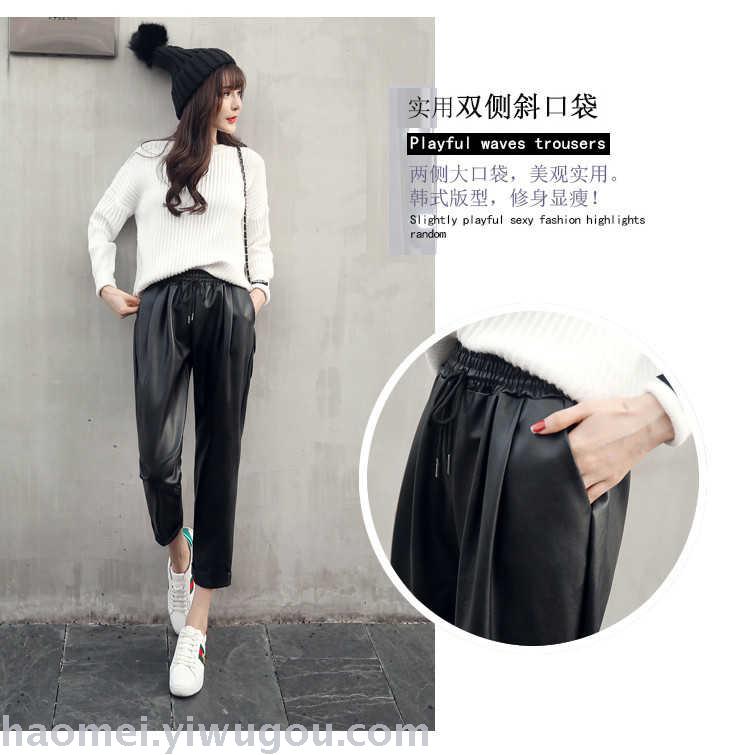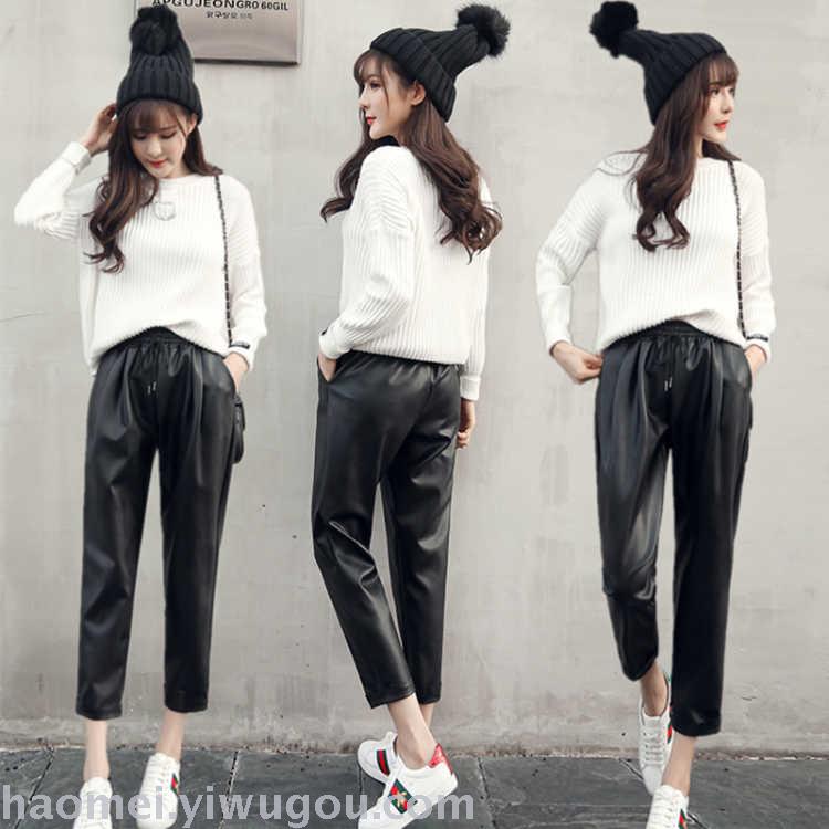 Pantalones de cuero de ropa de magnesio de lujo Harun pantalones de cuero Pu de cuero molido y terciopelo sin fisuras para mujeres pantalones casuales fuera