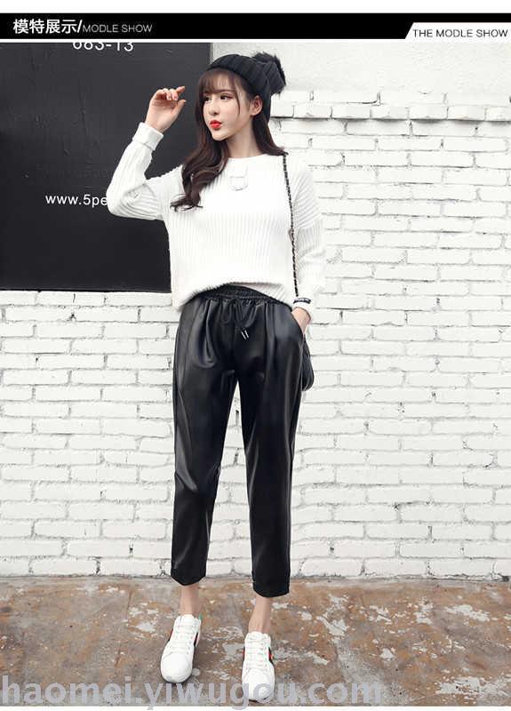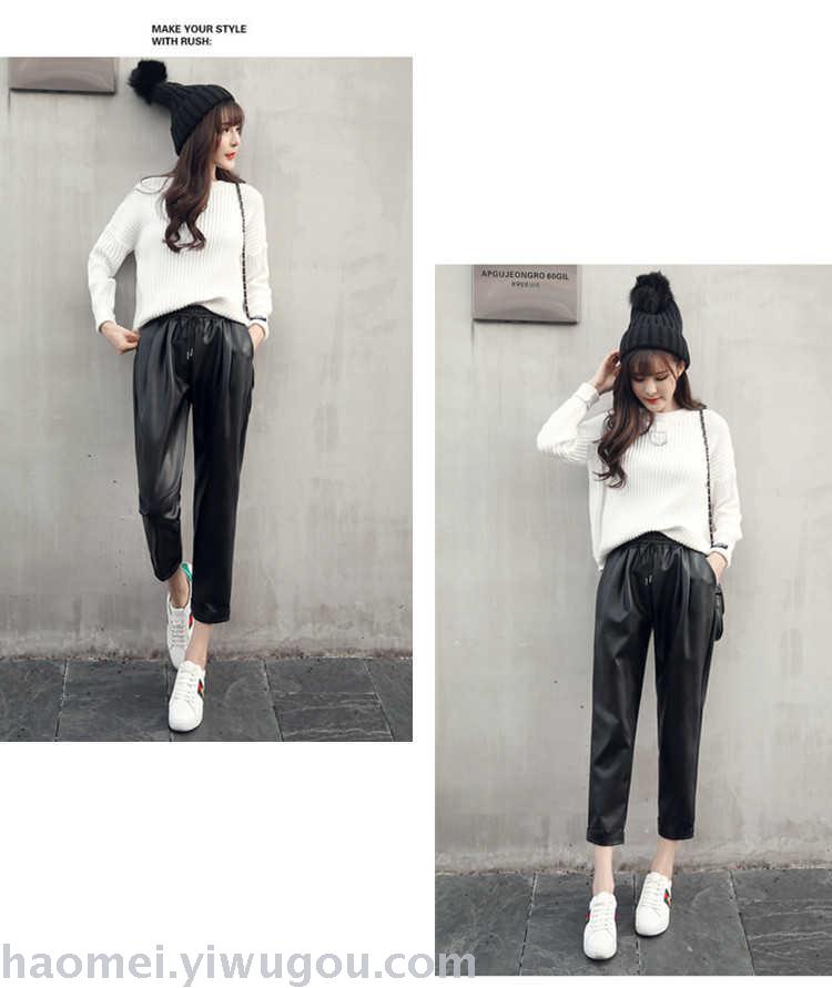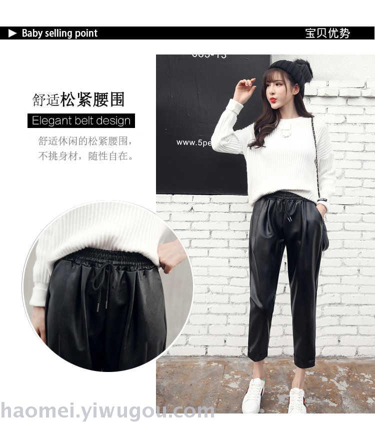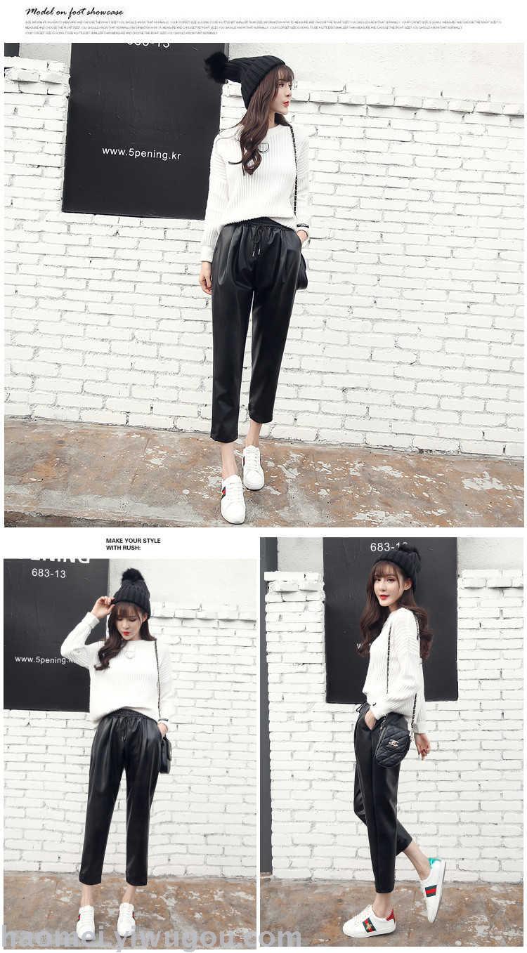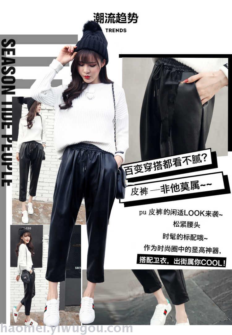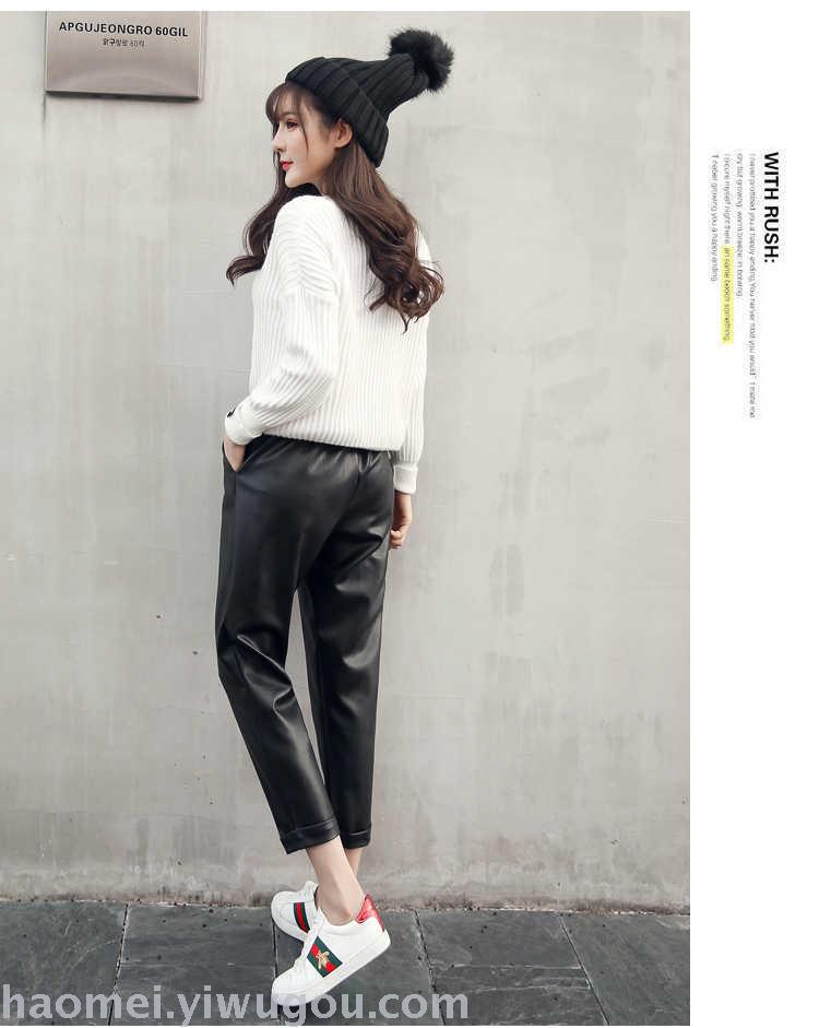 Pantalones de cuero de ropa de magnesio de lujo Harun pantalones de cuero Pu de cuero molido y terciopelo sin fisuras para mujeres pantalones casuales fuera