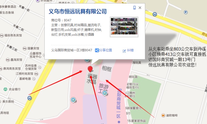 店铺地址:义乌国际商贸城一期3楼D区8047店面(13号门直通道)