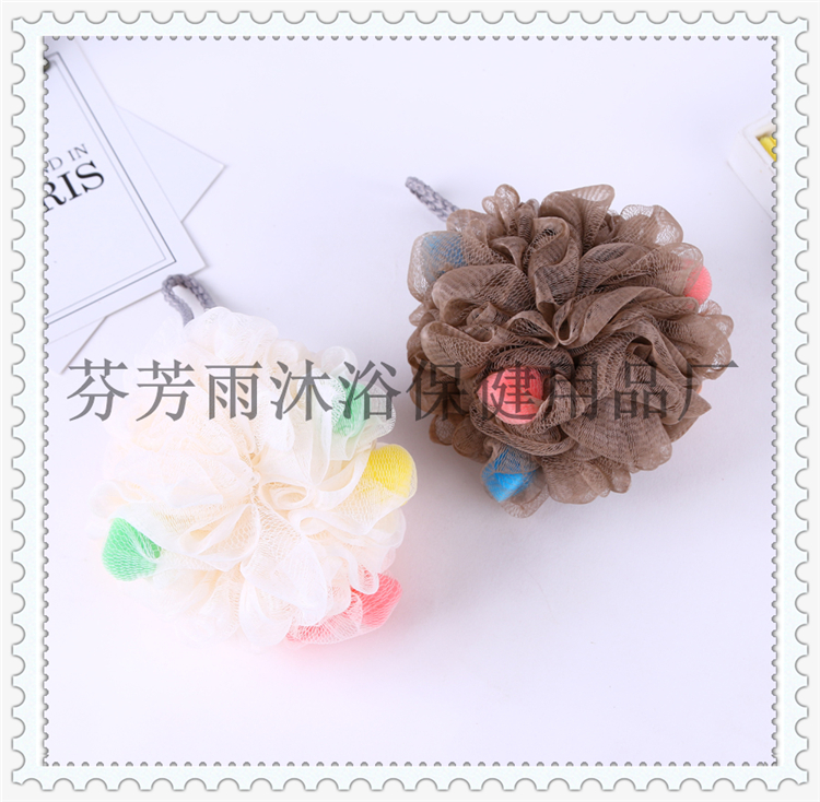 产品名称:大号多彩混色洗澡沐浴球浴花 可爱搓澡搓背起泡洗浴用洗澡巾