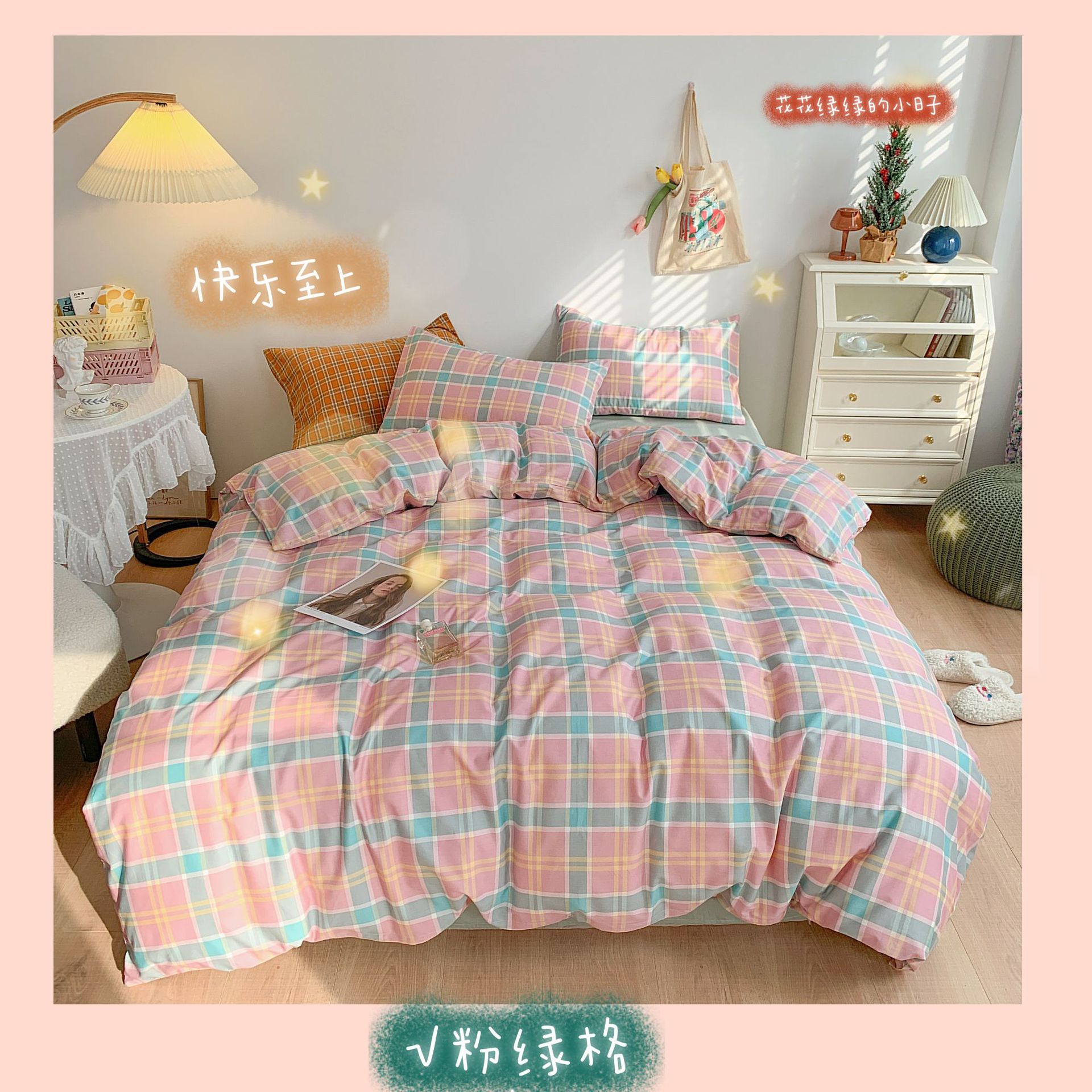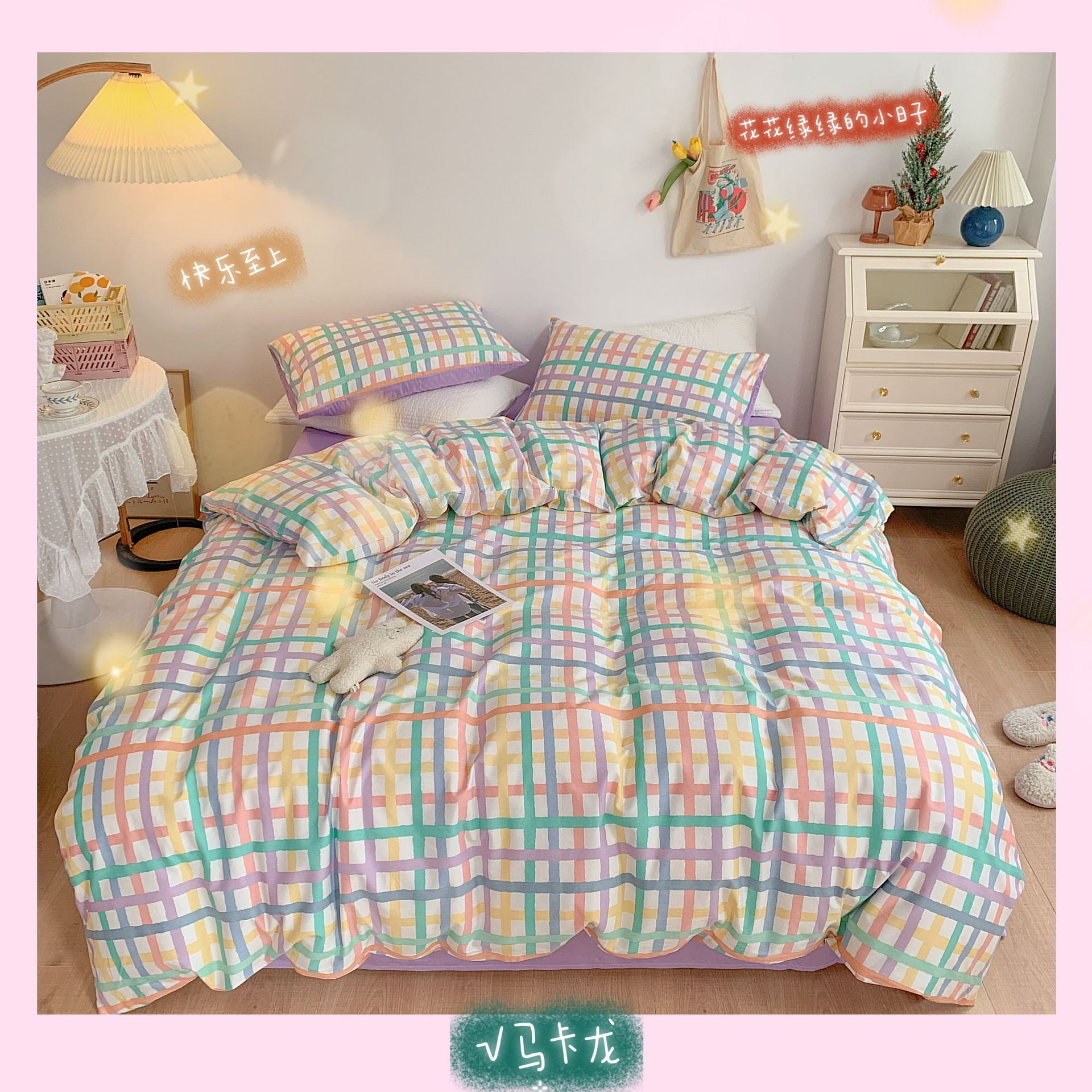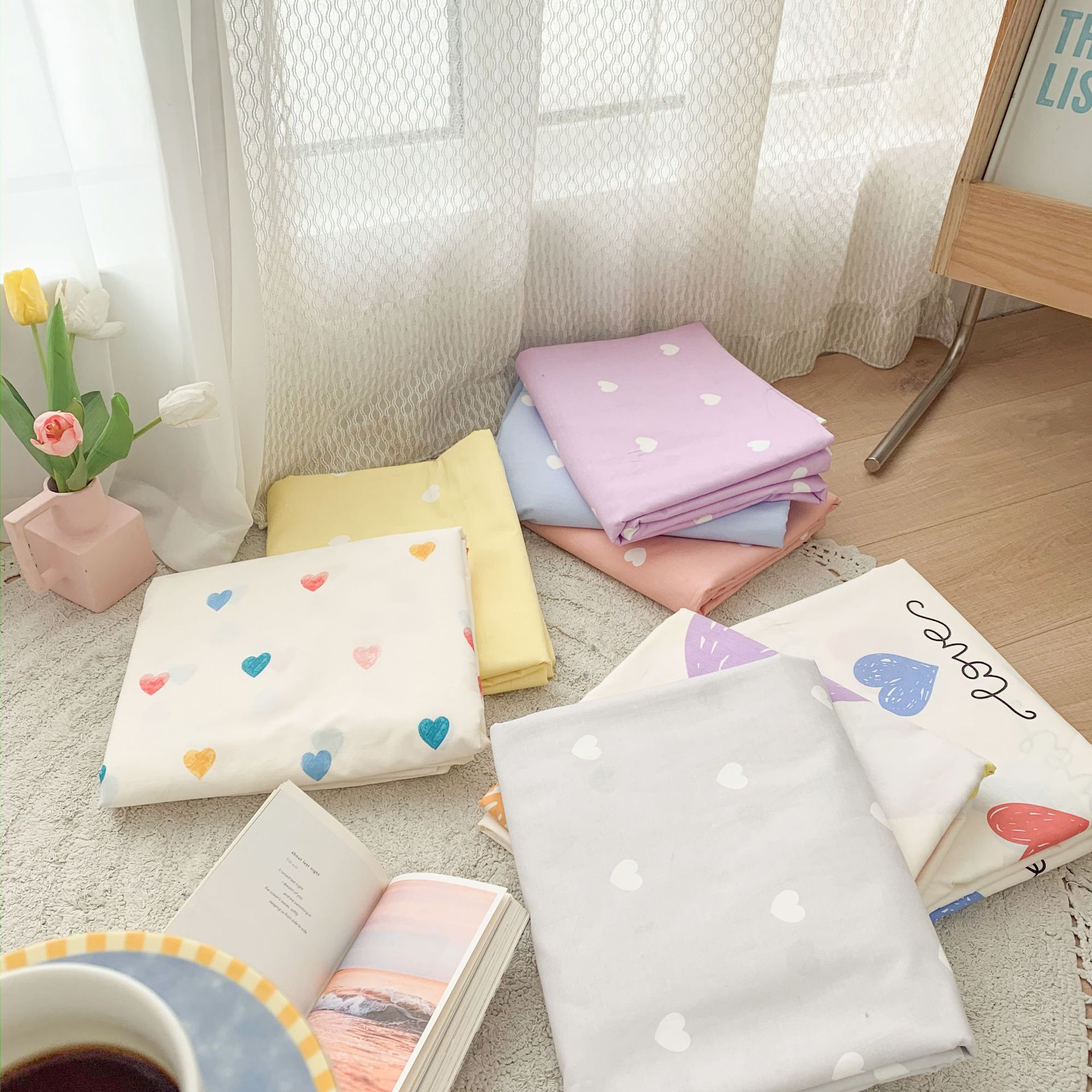 Ropa de cama de viento cuatro piezas de algodón en primavera y verano, sábanas de viento princesa, edredones, hojas de cama, algodón de flores puras, cuatro piezas