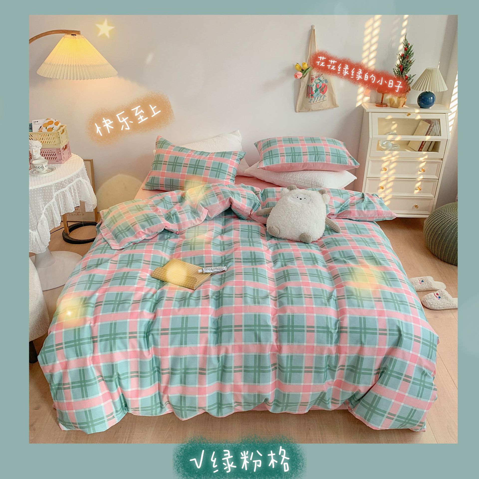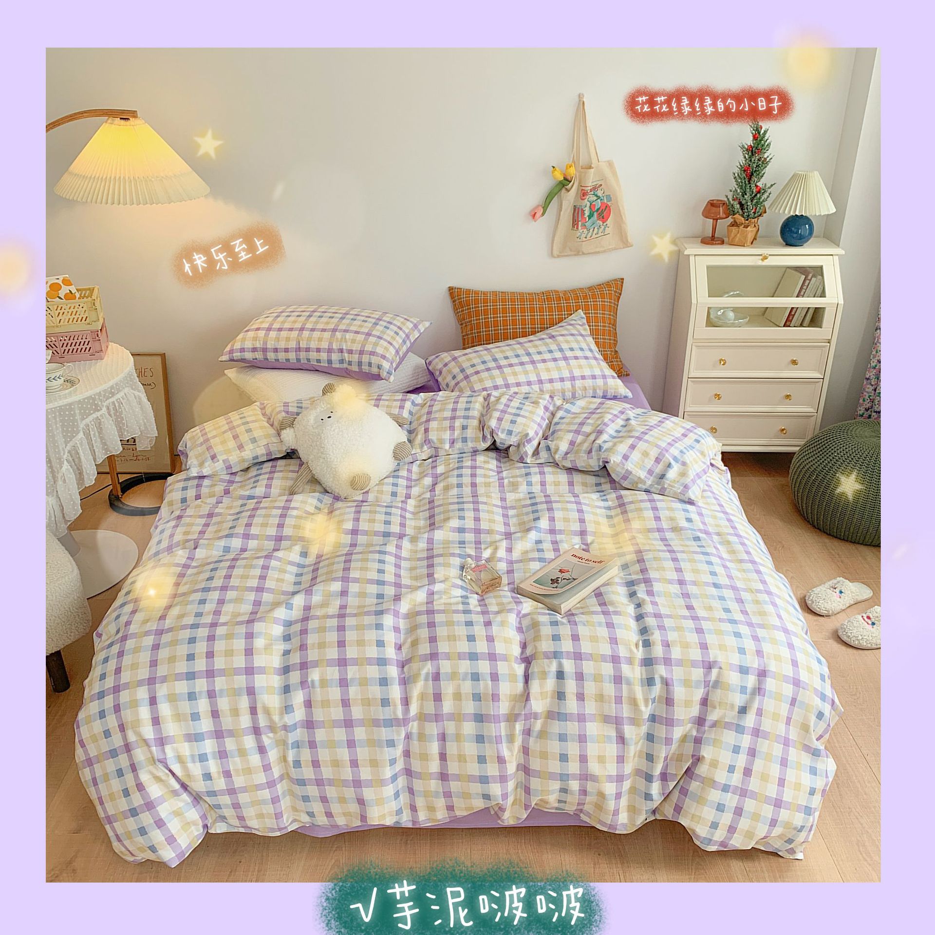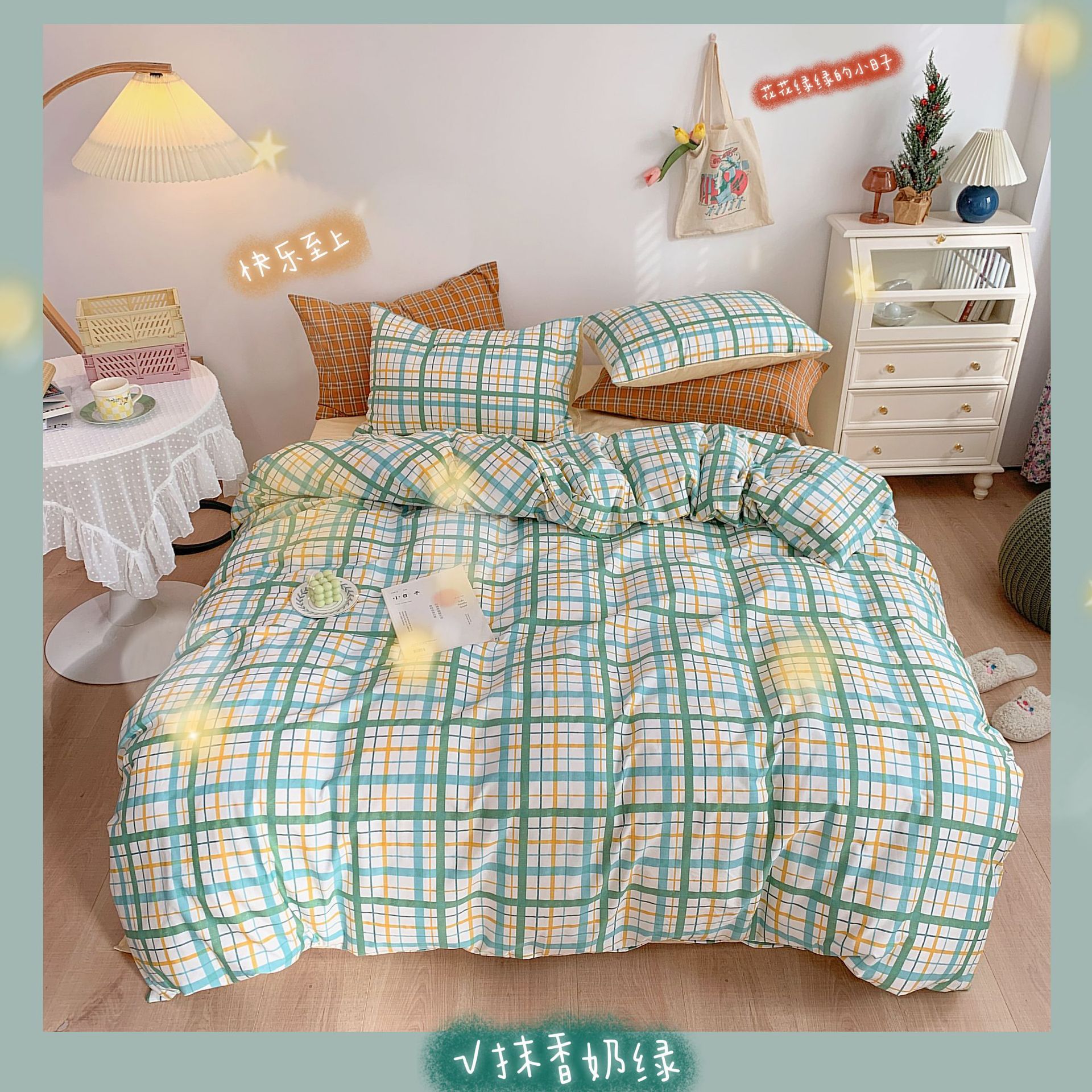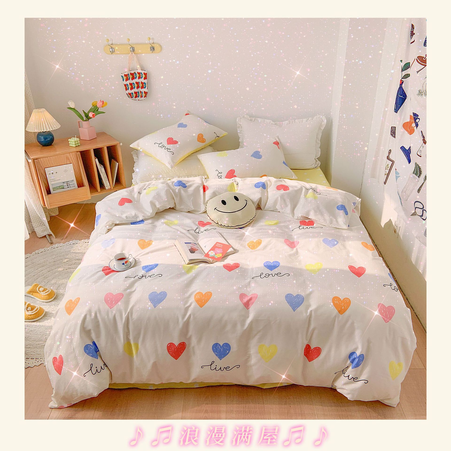 Ropa de cama de viento cuatro piezas de algodón en primavera y verano, sábanas de viento princesa, edredones, hojas de cama, algodón de flores puras, cuatro piezas