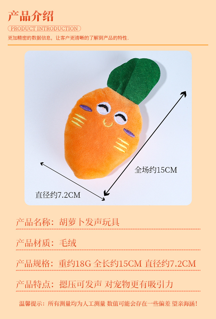 Nuevo juguete vocal de zanahoria de peluche para perros para aliviar el aburrimiento juguetes interactivos para perros juguetes para mascotas resistentes a las picaduras
