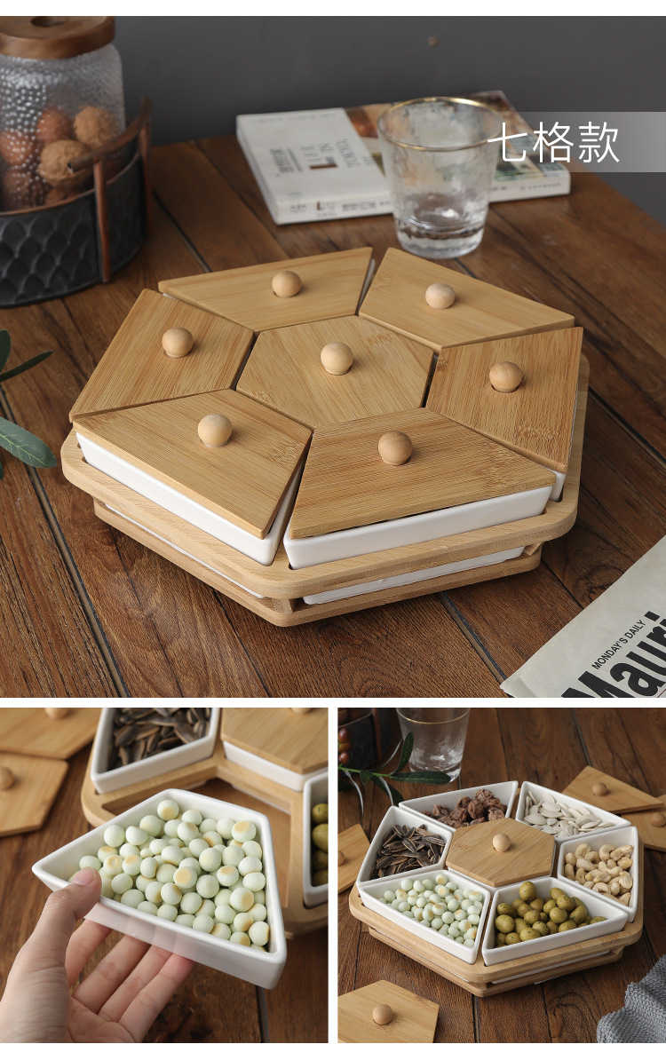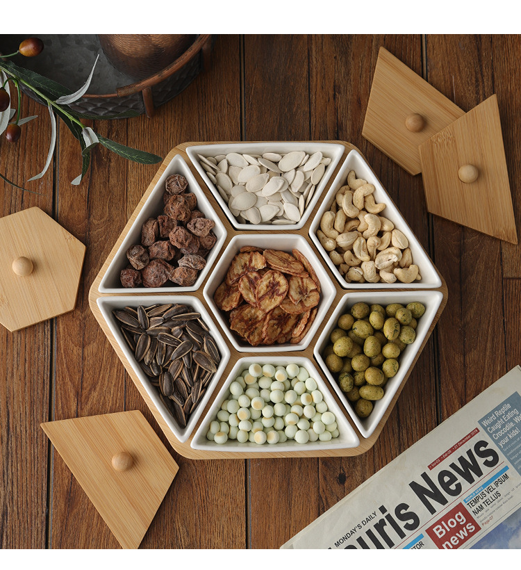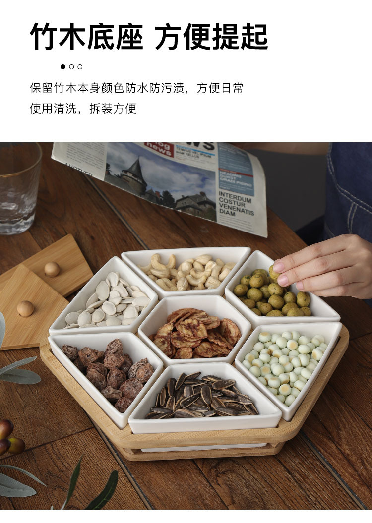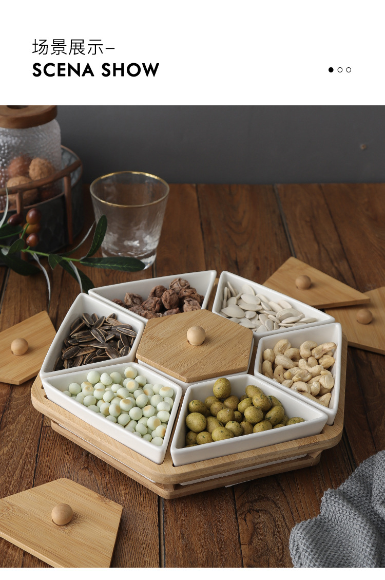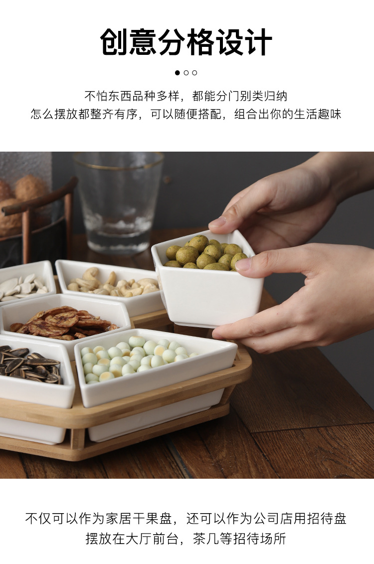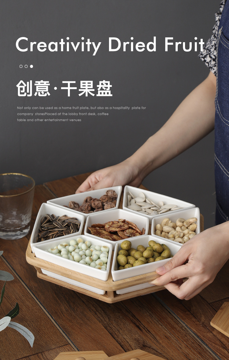 Bandeja de cerámica japonesa dividida en platos de frutas secas bandeja de bocadillos Sala de estar bandeja de frutas KTV bandeja de bocadillos caja de almacenamiento de semillas de melón